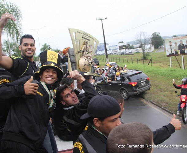O dia 20 de maio de 2013 não vai sair da memória dos torcedores do Tigre tão cedo. Por volta das 8h30min daquela segunda-feira, a delegação do Criciúma, que levou o título do Campeonato Catarinense da Divisão Principal 2013, desembarcou na sede do Corpo de Bombeiros de Içara. De lá começou o desfile, com destino ao estádio Heriberto Hülse, que a torcida do time criciumense guardará com muito carinho. Içara e Criciúma pararam para ver os campeões.