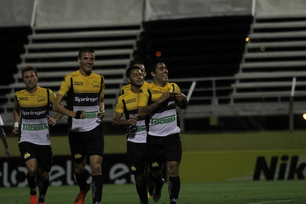 Jogadores comemoraram um dos gols do Tigre. Foto: Fernando Ribeiro/www.criciuma.com.br