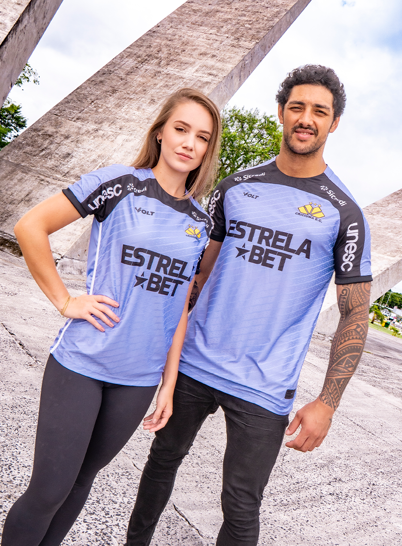 O Criciúma Esporte Clube e a Volt Sport apresentam a nova camisa padrão 2 para a temporada, trazendo um design que homenageia um dos elementos mais icônicos da cidade: o petit-pavé. A peça, predominantemente branca, conta com os ombros em amarelo e preto e estampa especial inspirada nos tradicionais mosaicos que fazem parte da identidade cultural de Criciúma.