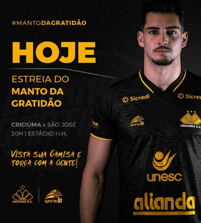 O Criciúma irá estrear sua nova camisa na noite desta segunda-feira (09/08). A partir das 20 horas, o Tigre entra em campo com o “Manto da Gratidão" para enfrentar o São José, no estádio Heriberto Hülse, pela 11ª rodada do Campeonato Brasileiro da Série C.