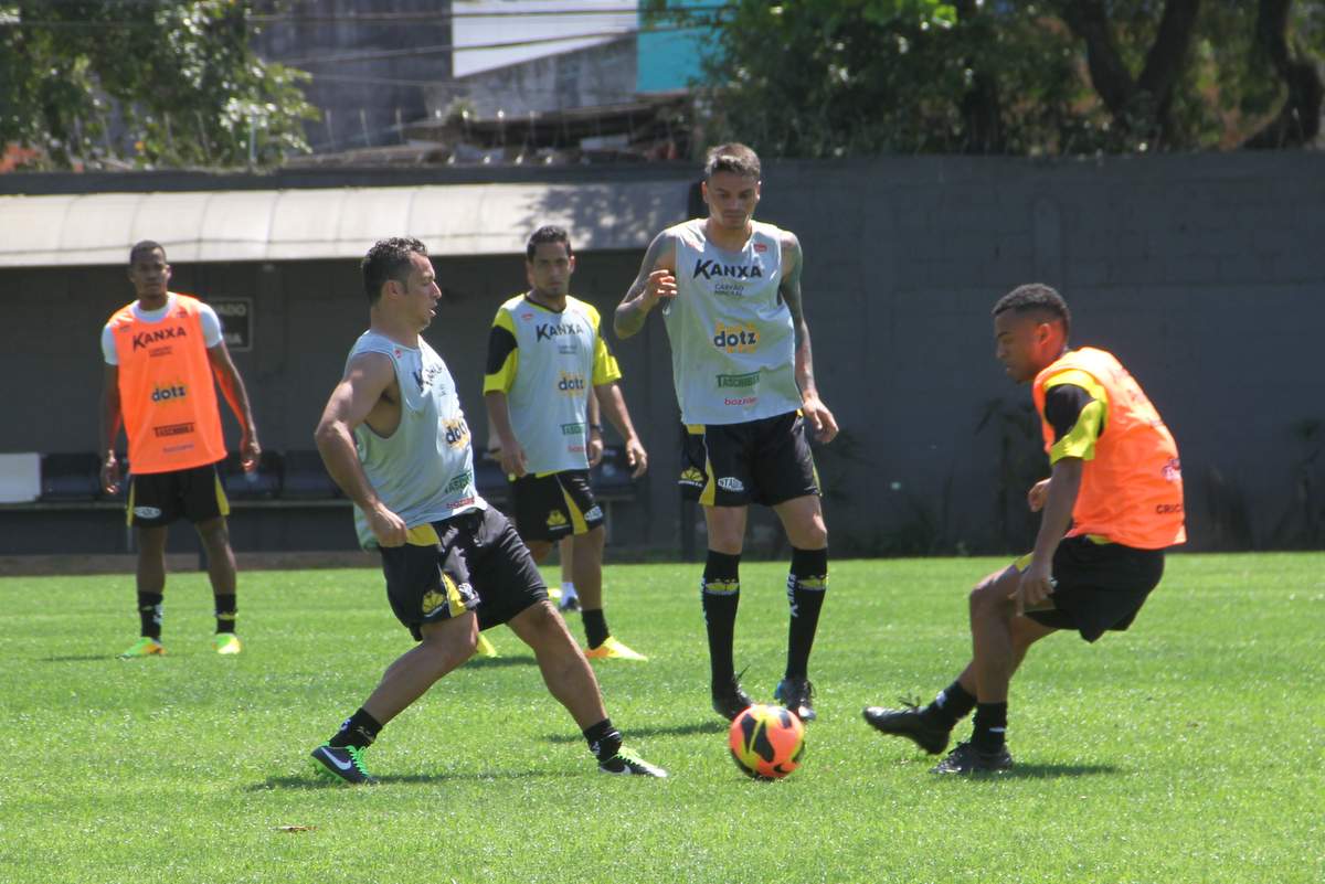 Na primeira parte do treino deste sábado, o técnico Sílvio Criciúma, acompanhado dos demais integrantes da comissão técnica, conversou com os atletas. Depois do aquecimento, os jogadores fizeram uma atividade de dois toques com o gramado reduzido.