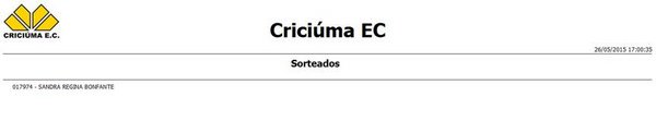 A sócia aniversariante do Criciúma, Sandra Regina Bonfante, ganhou sete ingressos de camarote para a partida diante do Atlético (GO). O sorteio ocorreu através de um sistema automático do clube. A partida ocorre neste sábado (30/05), às 16h30min, no estádio Heriberto Hülse, e será válida pela 4ª rodada do Campeonato Brasileiro.