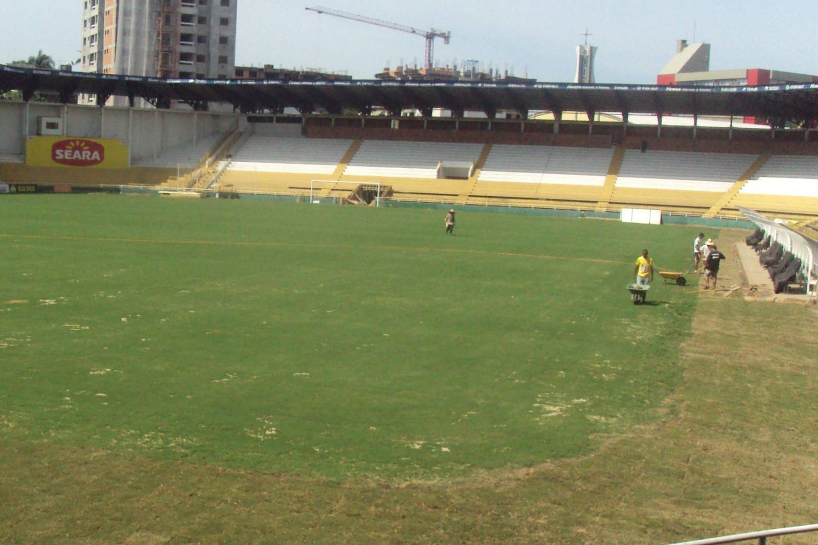 O gramado foi rebaixado nas laterais para evitar o acúmulo de água. Foto: Lucas Sabino/E.C.