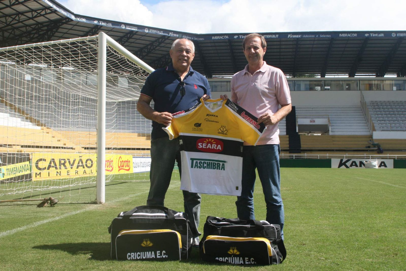 Aderbal e Sarandi receberam os uniformes. Foto: Fernando Ribeiro/Criciúma E. C.