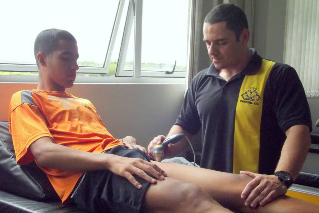 Gomes durante atendimento a um atleta da base. Foto: Divulgação/www.criciuma.com.br