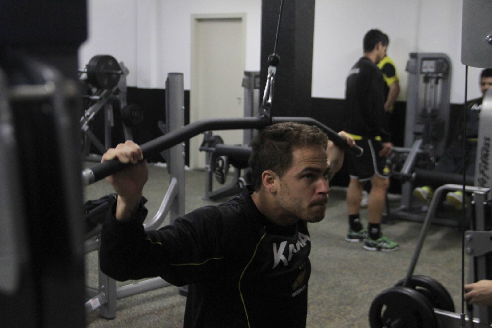 Neste sábado, os atletas foram divididos em dois grupos. Esses jogadores se alternaram no trabalho de core e também no de musculação, na nova academia do Majestoso.