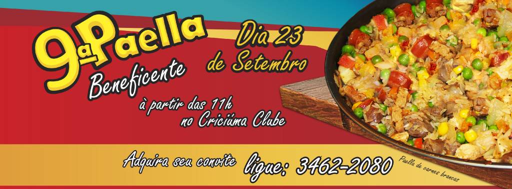 A nona edição da Paella Beneficente da Abadeus, instituição criciumense, será realizada no dia 23 de Setembro, a partir das 11 horas, no Criciúma Clube. A Loja Tigre Maníacos, localizada em anexo ao estádio Heriberto Hülse, está com ingressos à venda. O valor será de R$ 25,00 para compras antecipadas.