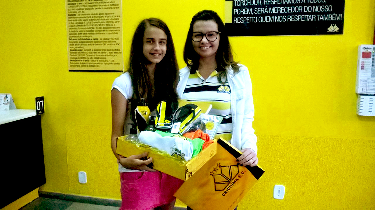 A sócia Mayara Stacowski Geremias ganhou um kit com produtos oficiais do Criciúma Esporte Clube. Ela é a ganhadora do mês de fevereiro e o sorteio ocorreu na manhã desta sexta-feira (20/02).