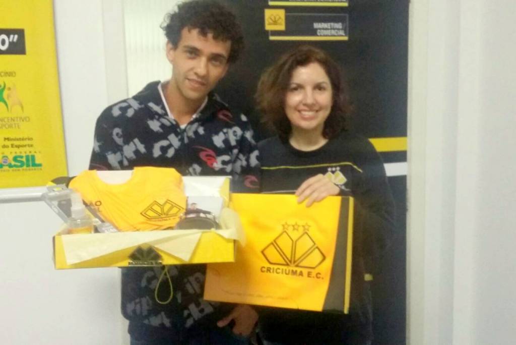 O sócio André Flores recebeu na noite deste sábado (19/09) um kit com produtos oficiais do Criciúma no estádio Heribetto Hülse. Ele foi o ganhador do mês de setembro da promoção que sorteia produtos do Tigre entre os sócios em dia.