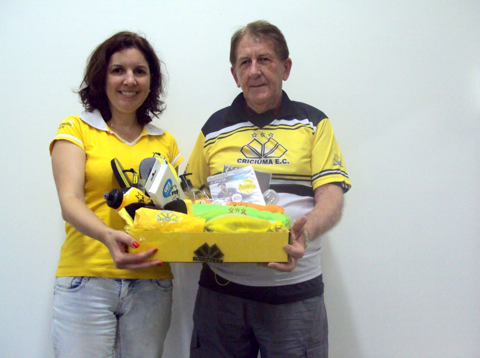O kit sorteado conta com um DVD da trajetória do Criciúma na Copa do Brasil de 1991, uma capa para celular, um body bebê, álcool em gel, uma sabonete líquida, roupa para cachorro, um jogo Fifa 2014 para PS3, um Squeeze, uma caneta de metal, um estojo com caneta e lapiseira, par de sandálias, botton, uma camisa goleiro treino na cor laranja e uma na cor verde, uma camiseta infantil (minha paixão) e um porta cartão.