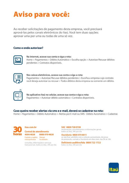 Pagamentos > Autorizar/Recusar débitos pendentes > Escolha a empresa cujo contrato você deseja autorizar ou recusar > Todos débitos desta empresa ou somente um débito.