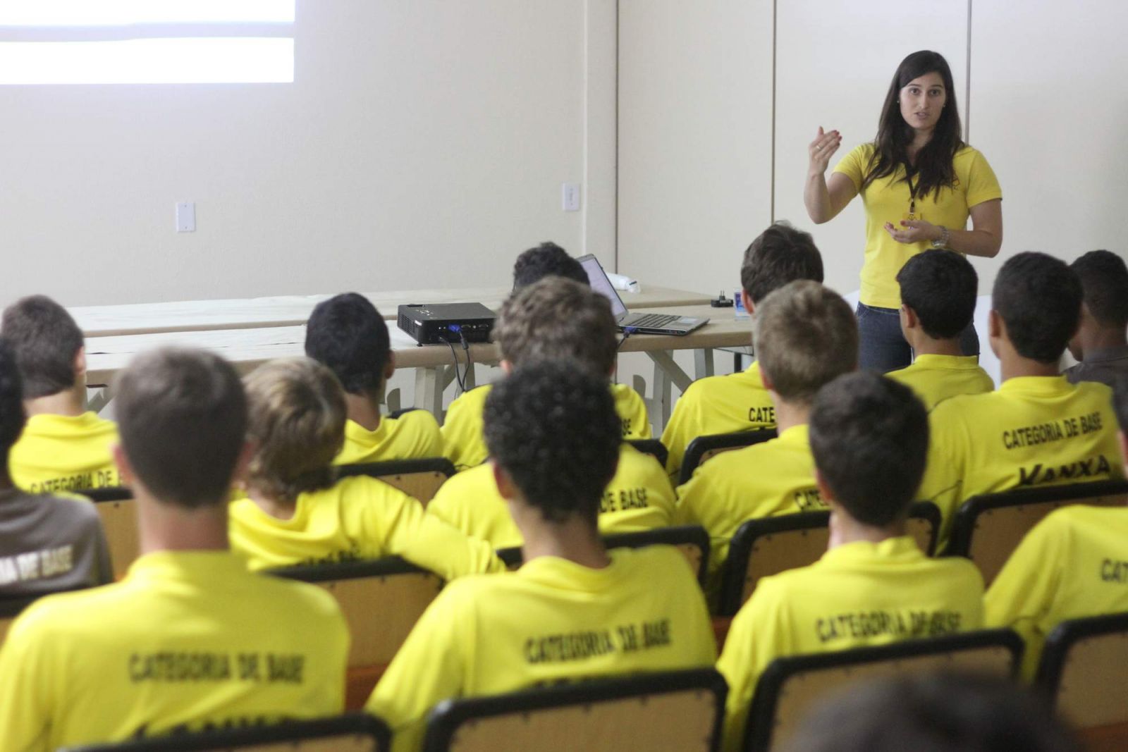 Palestra foi feita pela nutricionista do clube Camila Mazetto. Foto: Fernando Ribeiro/Criciúma E. C.