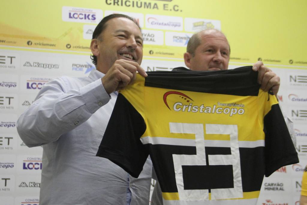 O Criciúma assinou na tarde desta quarta-feira (27/01) o contrato com a nova patrocinadora que estampará a marca na camisa carvoeira. A nova parceira do Tigre é a empresa Cristalcopo, de Içara. Ela estará nas costas do manto tricolor sobre a numeração. A assinatura ocorreu na Sala de Imprensa Clésio Búrigo, no estádio Heriberto Hülse. O presidente do clube, Jaime Dal Farra, o presidente da empresa, Anselmo Freitas, e o vice presidente de patrimônio, Vilmar Casagrande, participaram do evento.