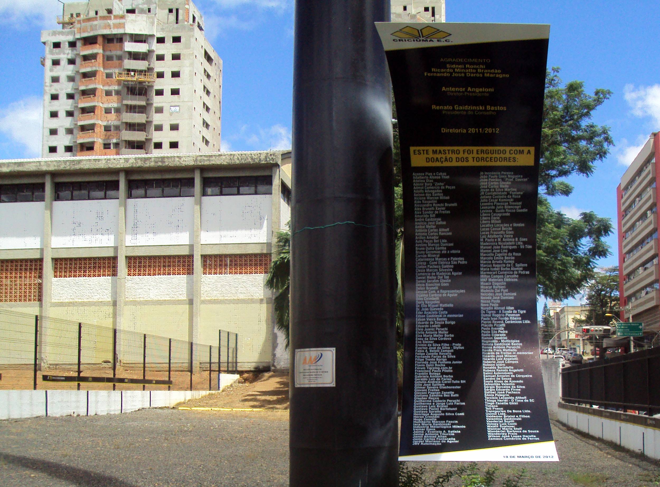 A placa da bandeira, que fica no estacionamento do estádio Heriberto Hülse, foi restaurada pelo Criciúma. O trabalho foi feito por uma empresa terceirizada da cidade. Nela estão escritos os nomes dos colaboradores que contribuíram para a fabricação da bandeira tricolor, que leva o escudo do time carvoeiro.