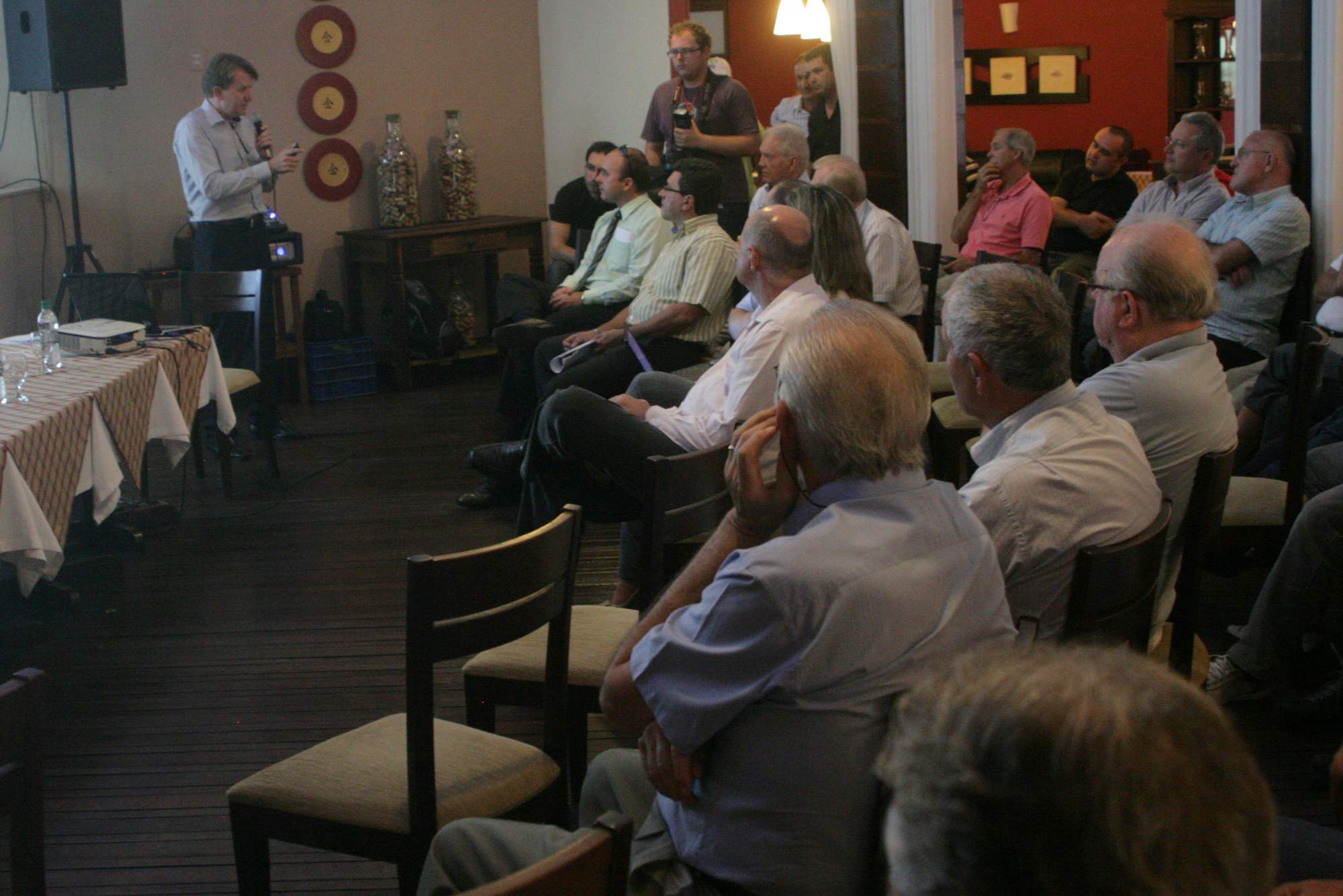 Legenda: Reunião do Conselho Deliberativo do Criciúma Esporte Clube ocorreu na noite desta quarta-feira (16/01) no Centro de Eventos Oasis. Na foto, o vice presidente financeiro Aílton Schuelter, apresenta o orçamento 2013
