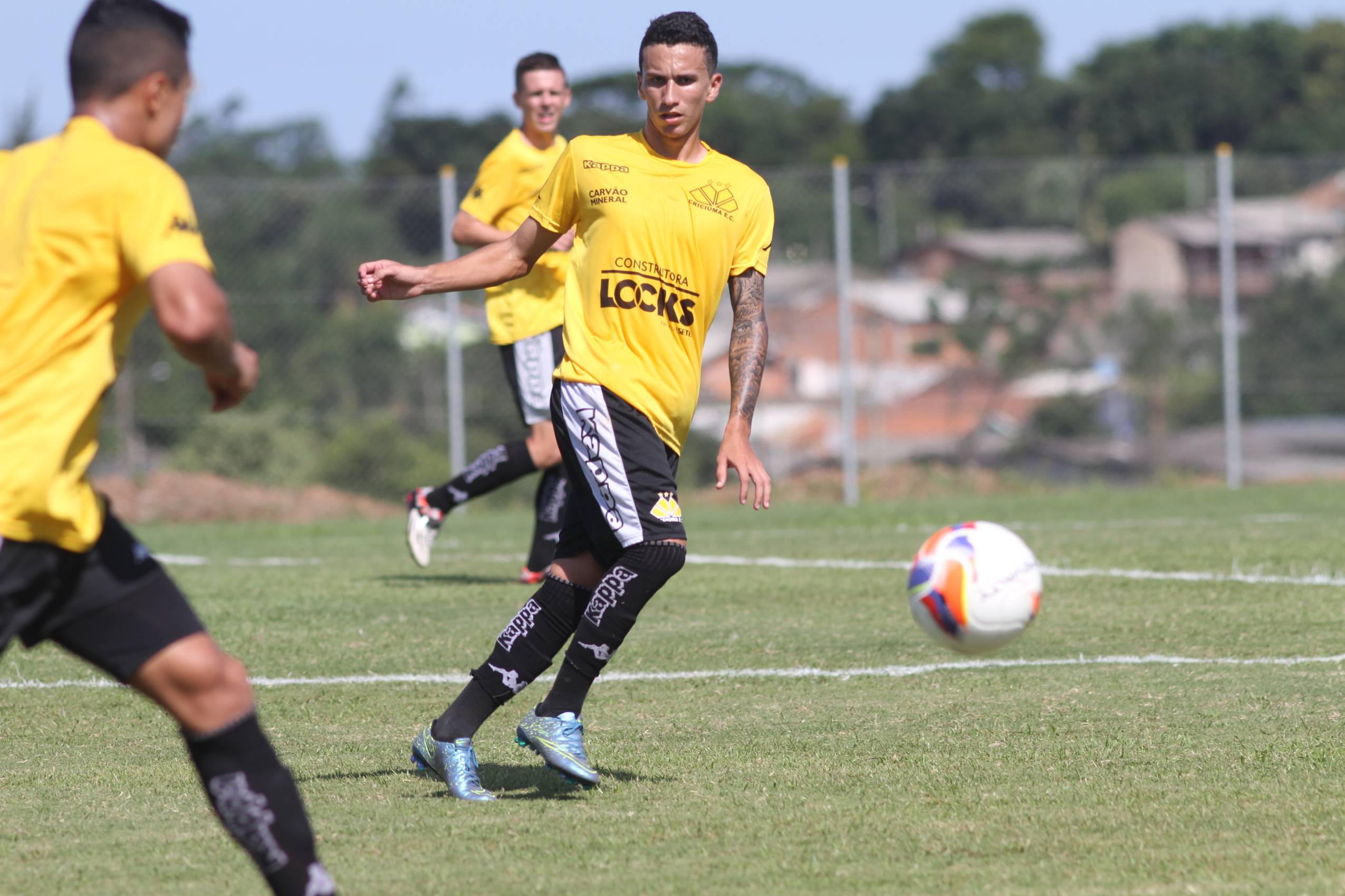 Legenda: Róger Guedes durante jogo treino entre Criciúma e Cruzeiro (RS), na tarde deste sábado (16/01), no Centro de Treinamento, no bairro Cristo Redentor