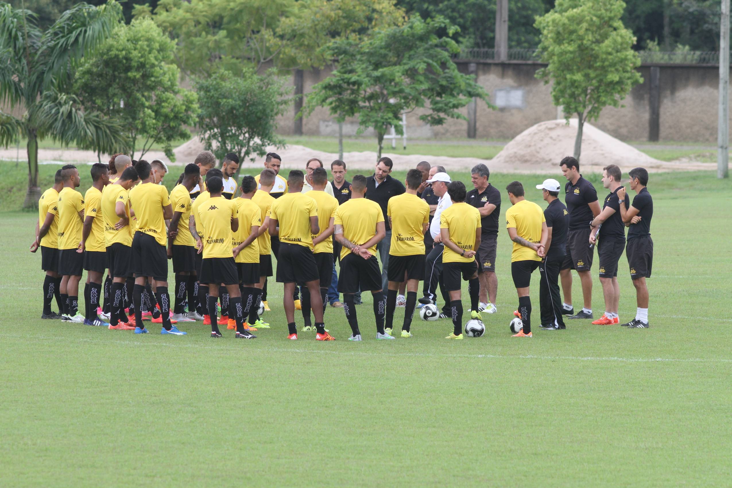 Legenda: Comissão técnica e atletas durante treino do Criciúma na manhã desta terça-feira (02/02), no Centro de Treinamento, no bairro Cristo Redentor