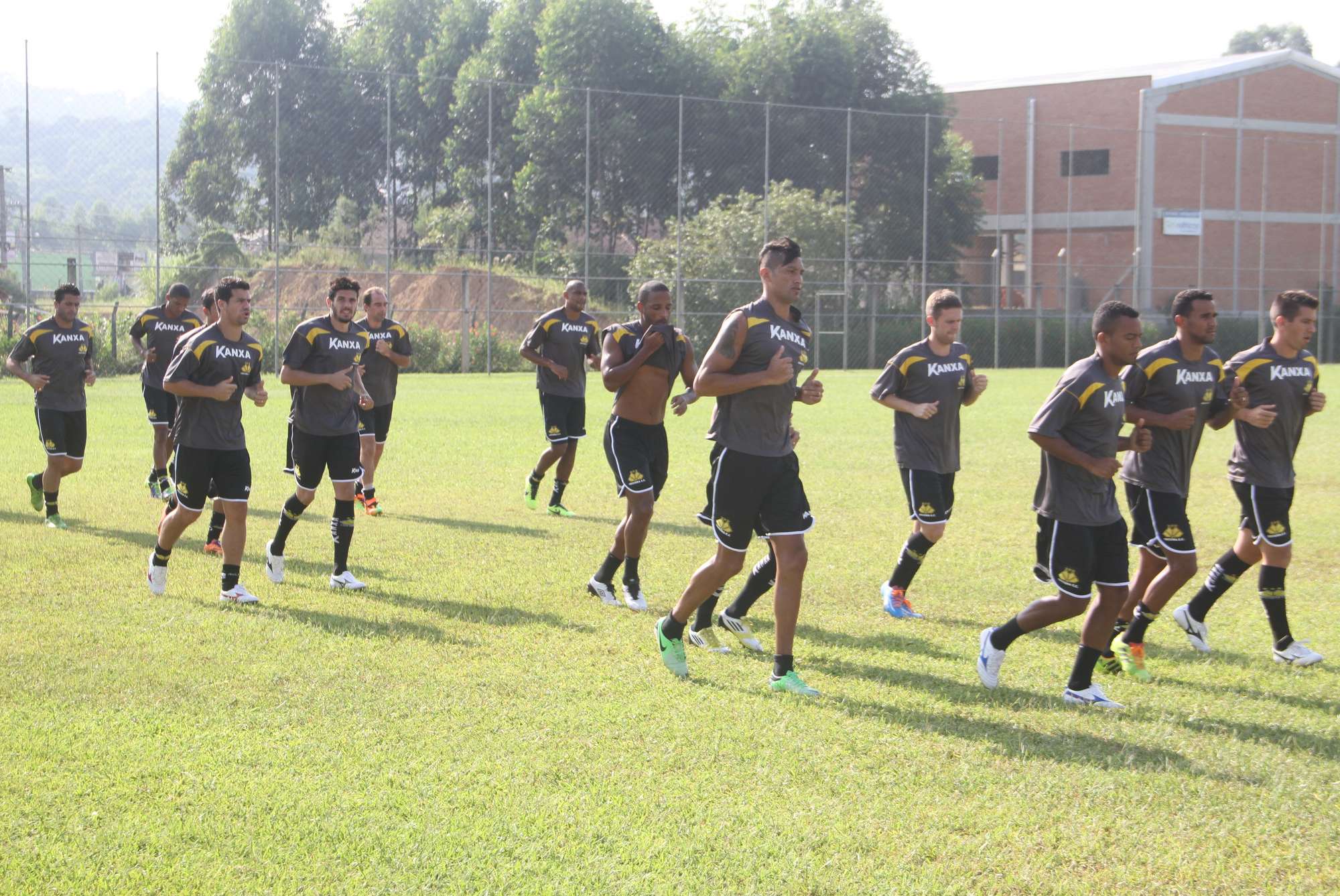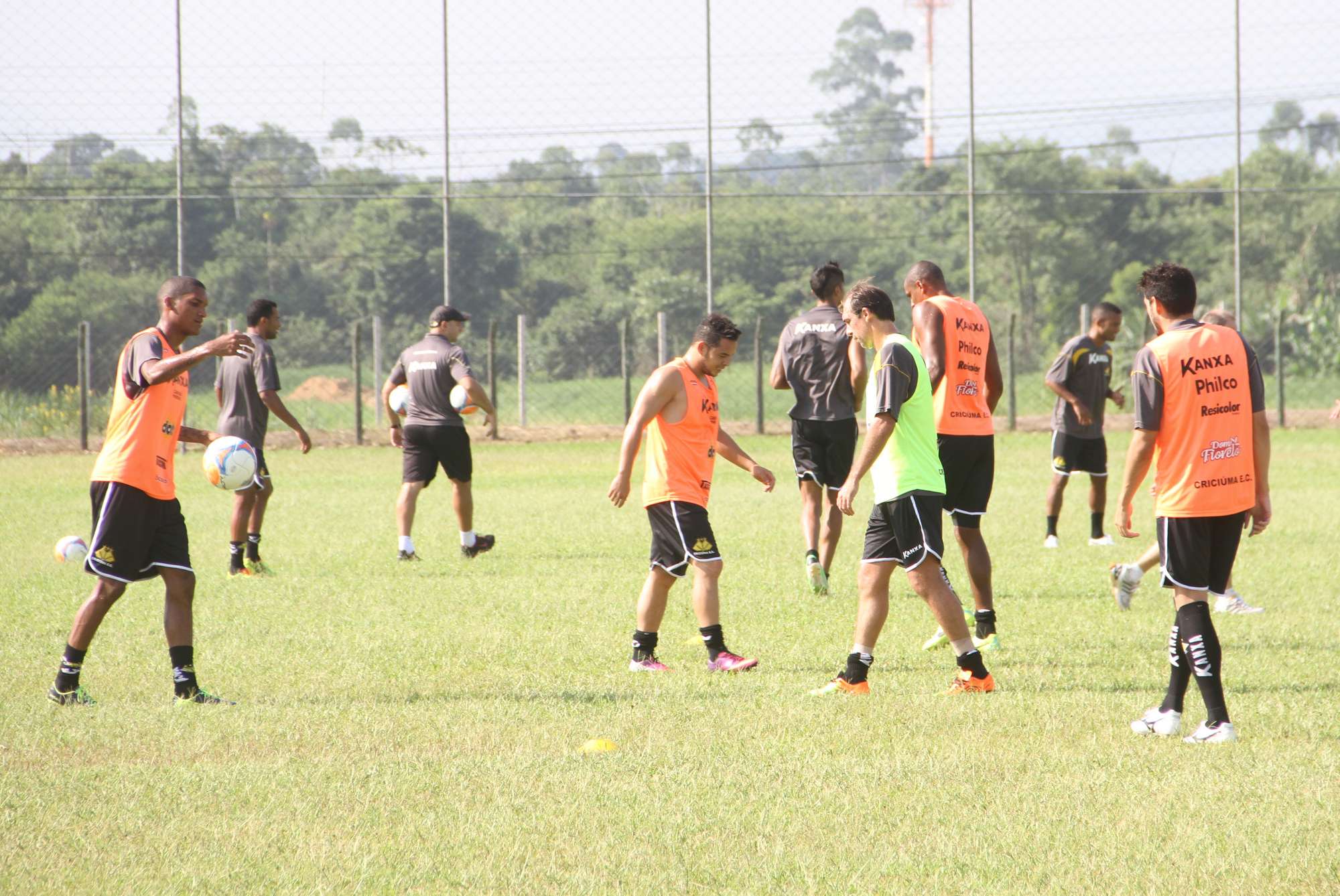 Legenda: Jogadores durante treino do Criciúma na Associação Atlética e Cultural Altona, em Blumenau, na manhã deste sábado (08/02)