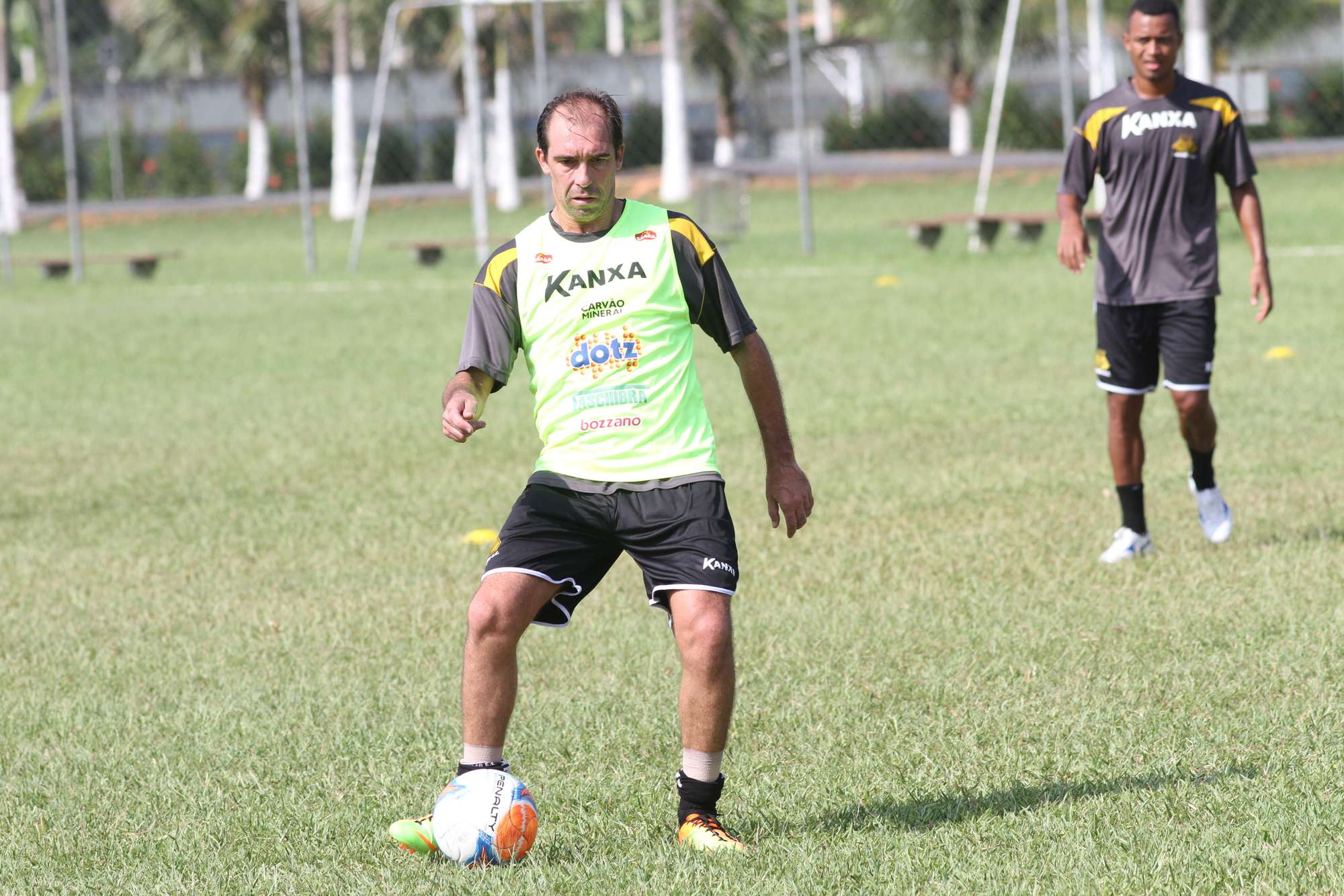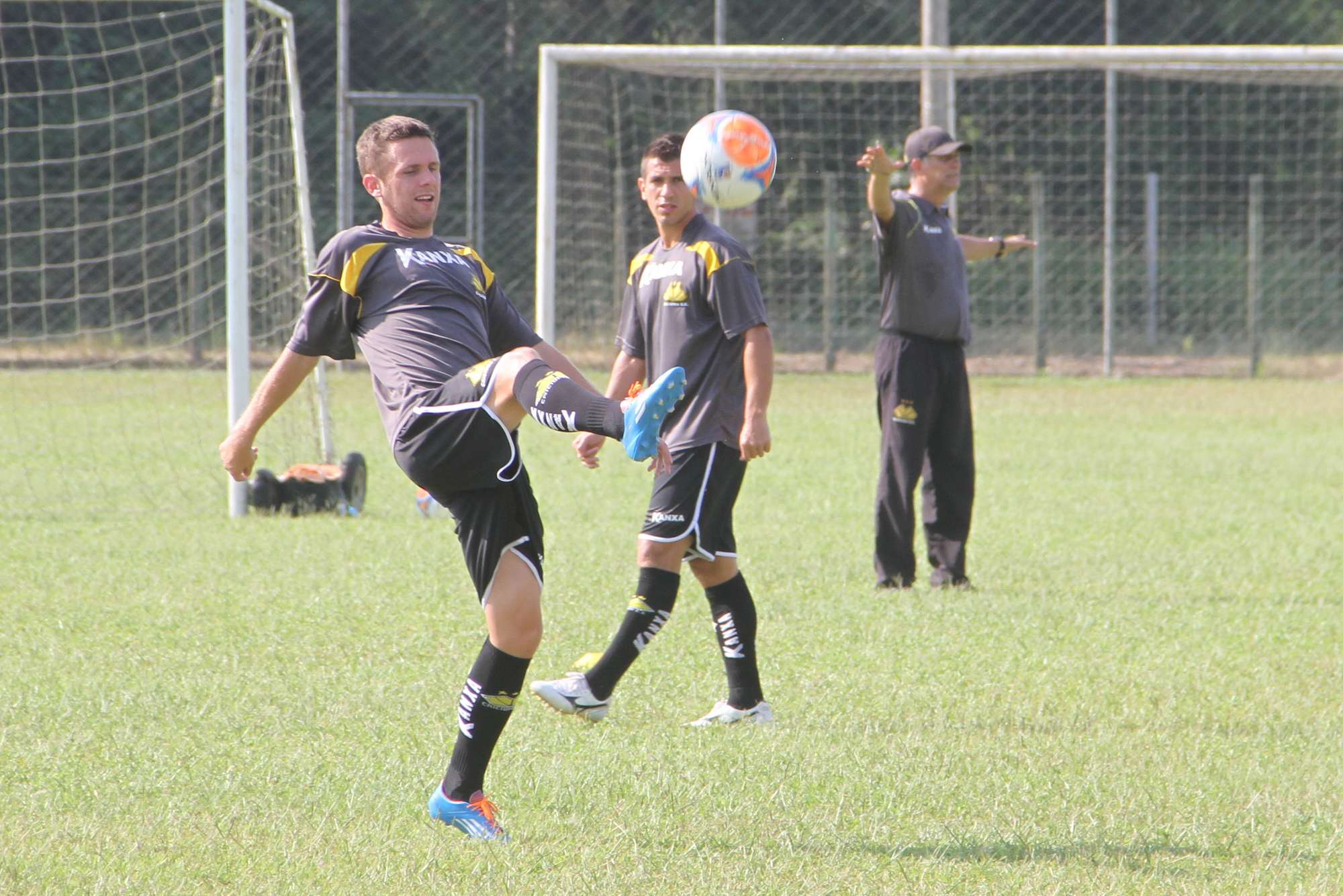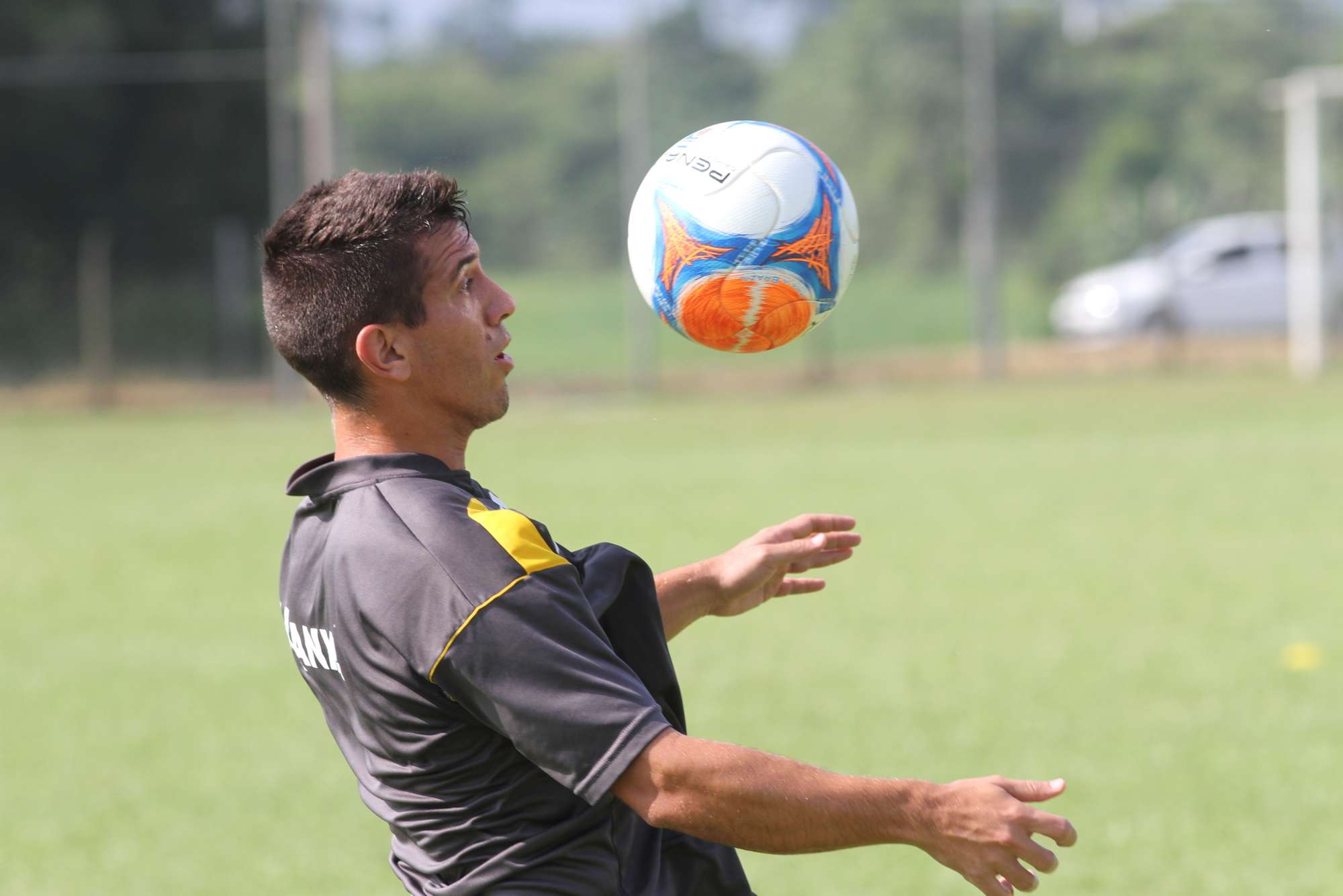 Legenda: Volante Serginho durante treino do Criciúma na Associação Atlética e Cultural Altona, em Blumenau, na manhã deste sábado (08/02)