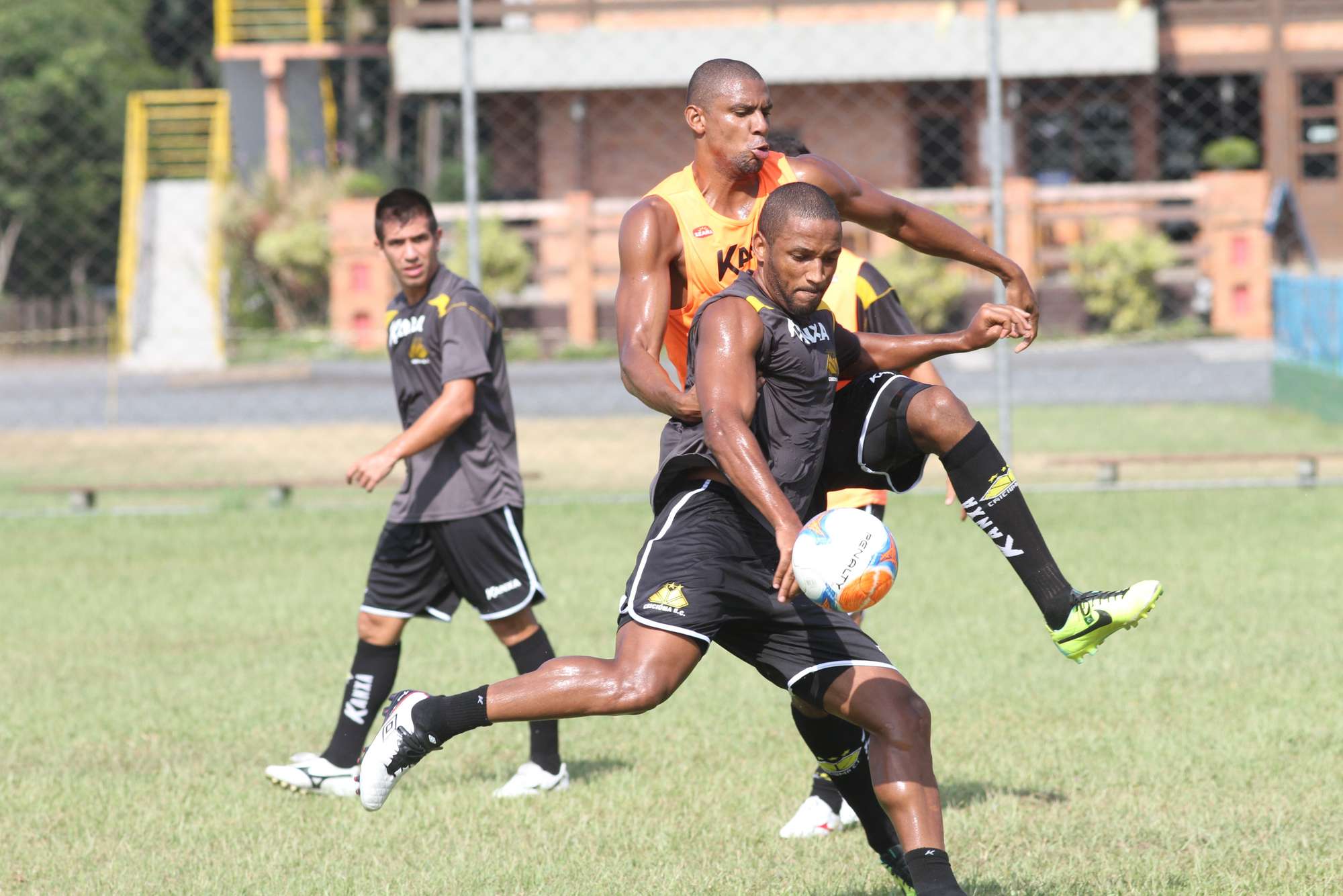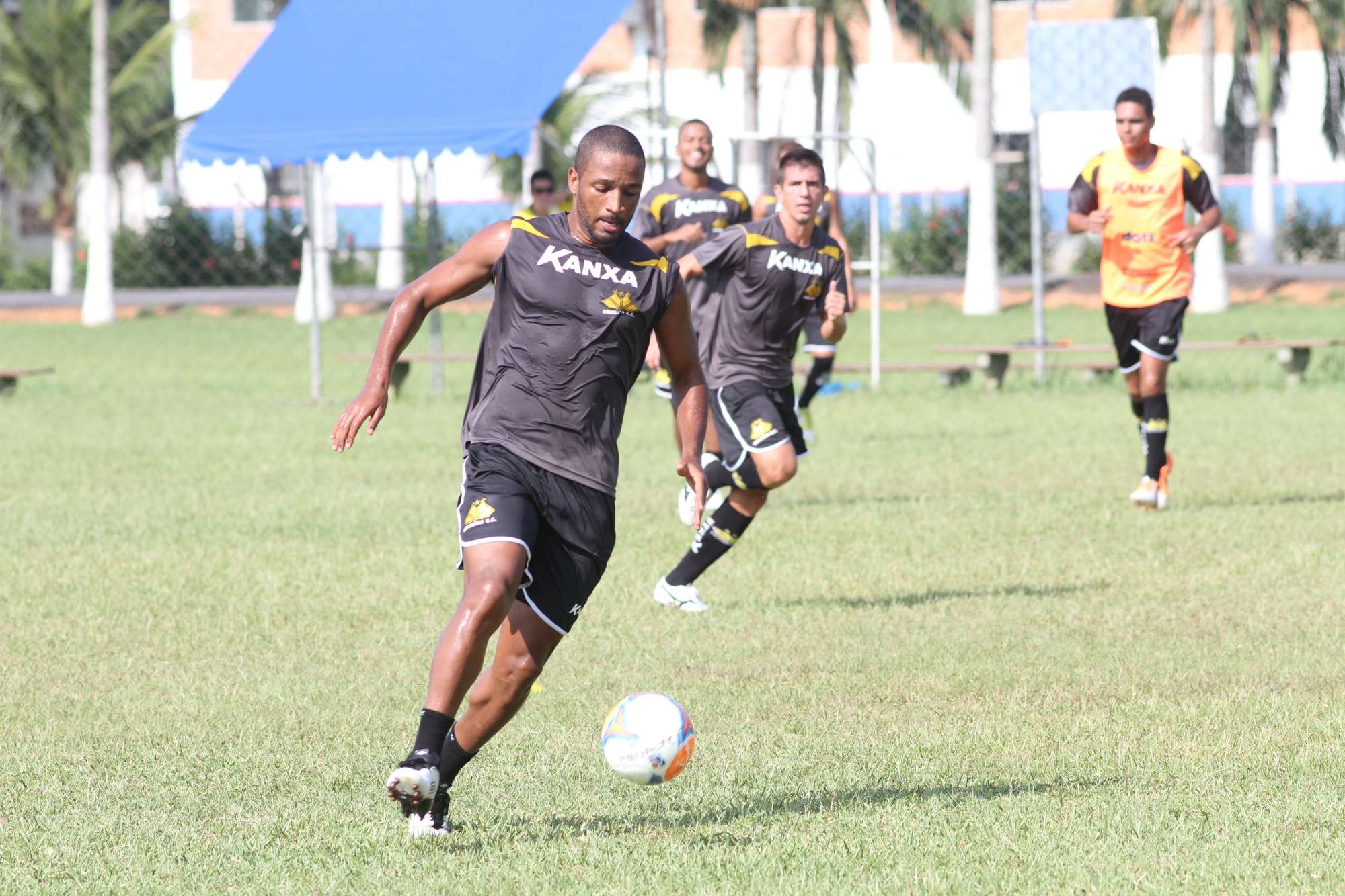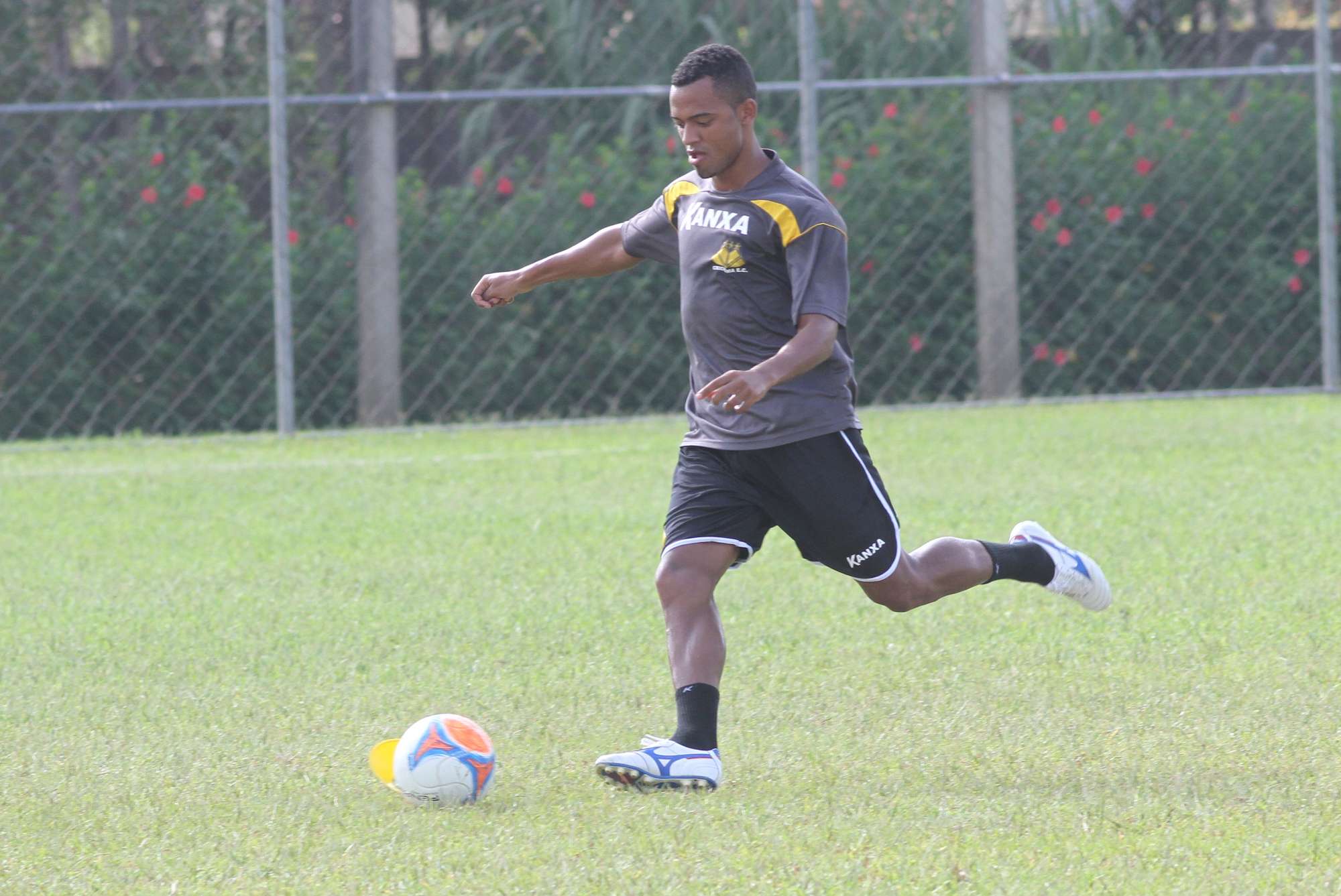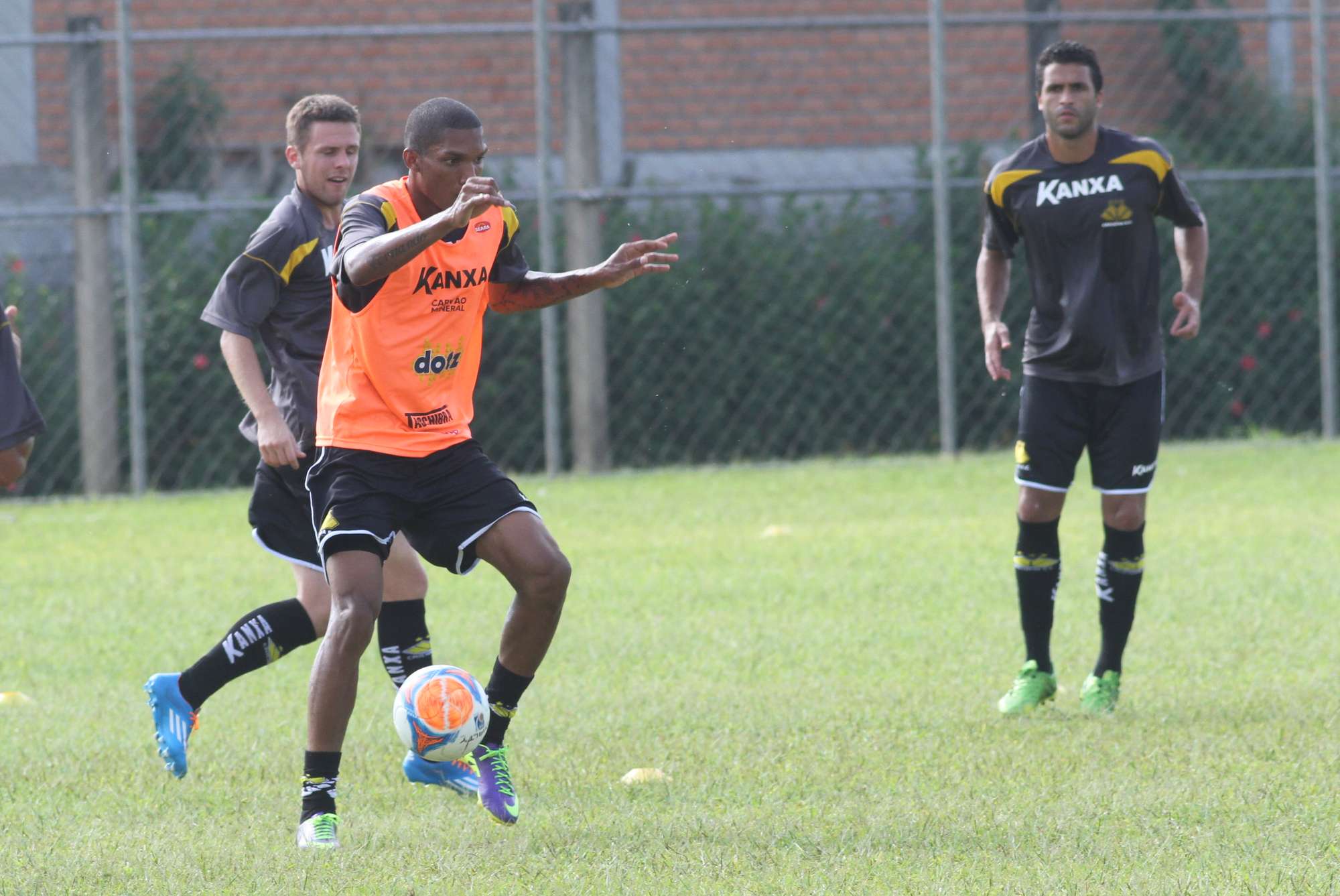 Legenda: Atacante Fernando Karanga durante treino do Criciúma na Associação Atlética e Cultural Altona, em Blumenau, na manhã deste sábado (08/02)
