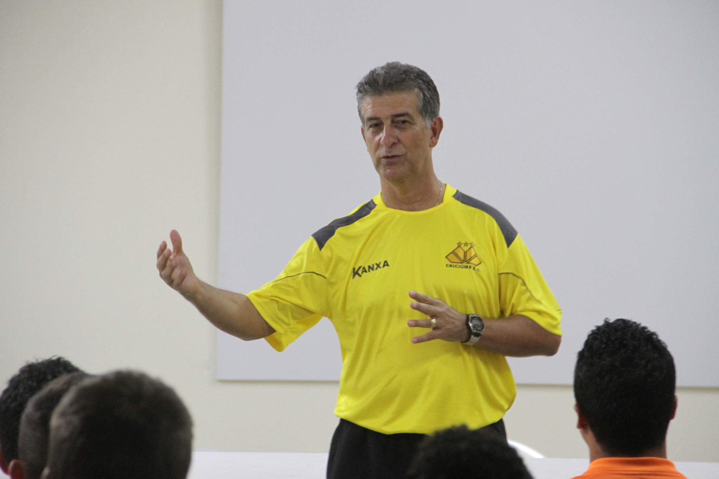 Legenda: O técnico Ricardo Drubscky conversou com os atletas na reapresentação do grupo de jogadores na tarde desta terça-feira (07/01) no auditório do estádio Heriberto Hülse