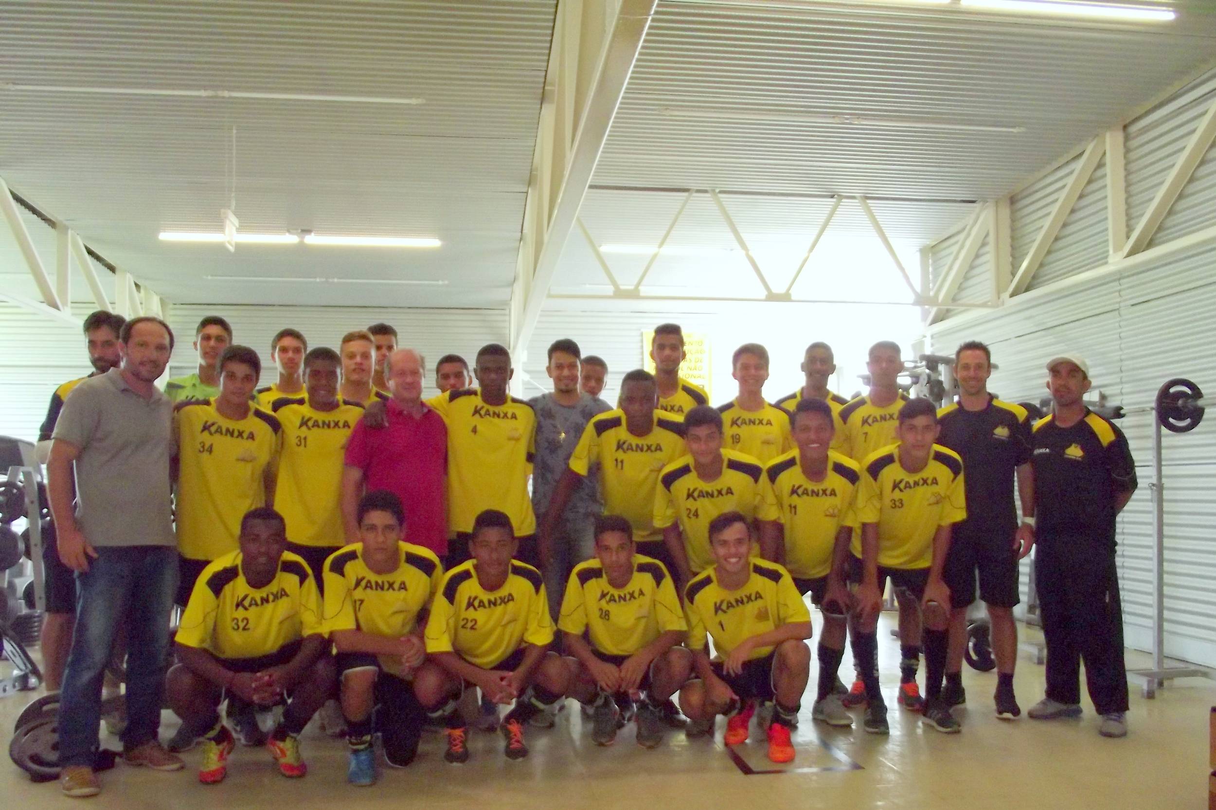 Legenda: Lucca com o grupo e comissão técnica do Sub-16 na tarde desta terça-feira (29/12), no CT.