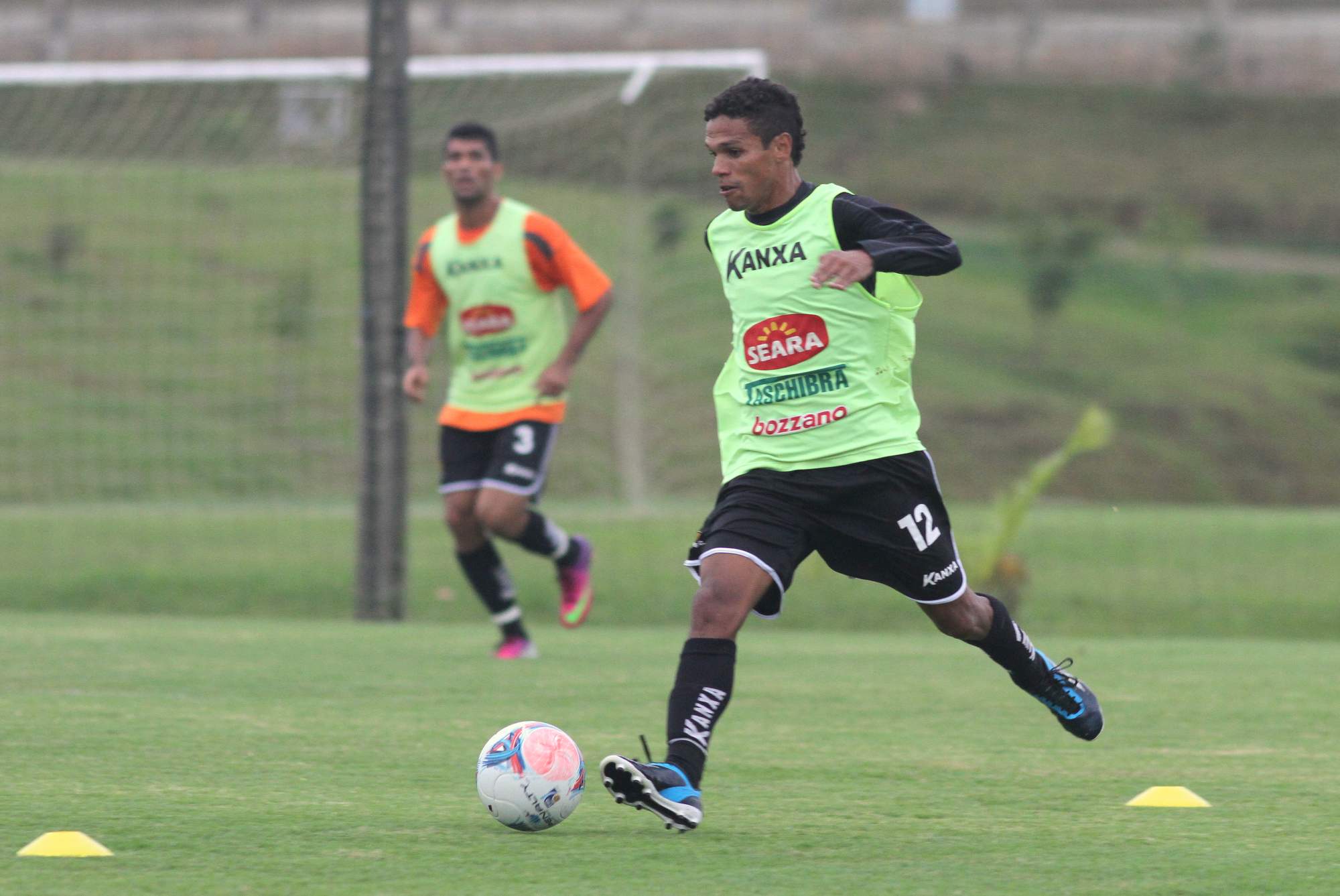 Legenda: Lateral Sueliton (E) e Fabinho (D) durante treino no CT na tarde desta sexta-feira (12/04)