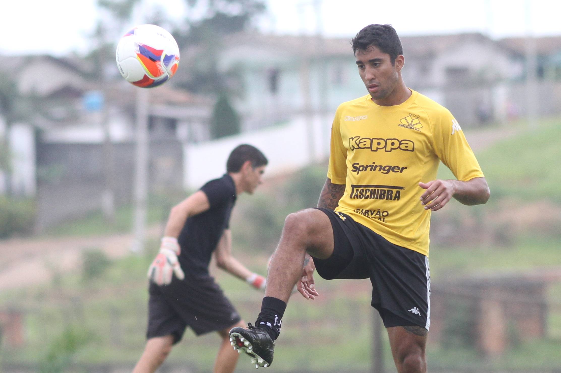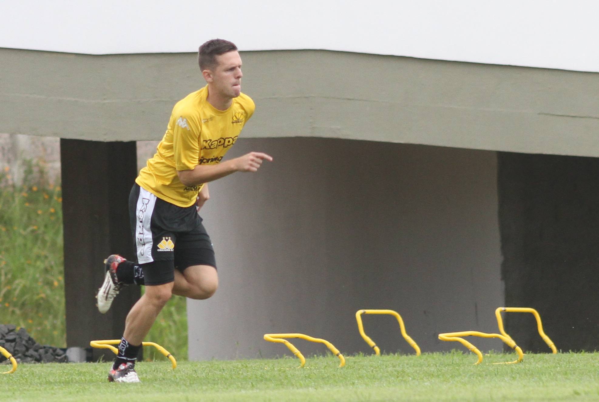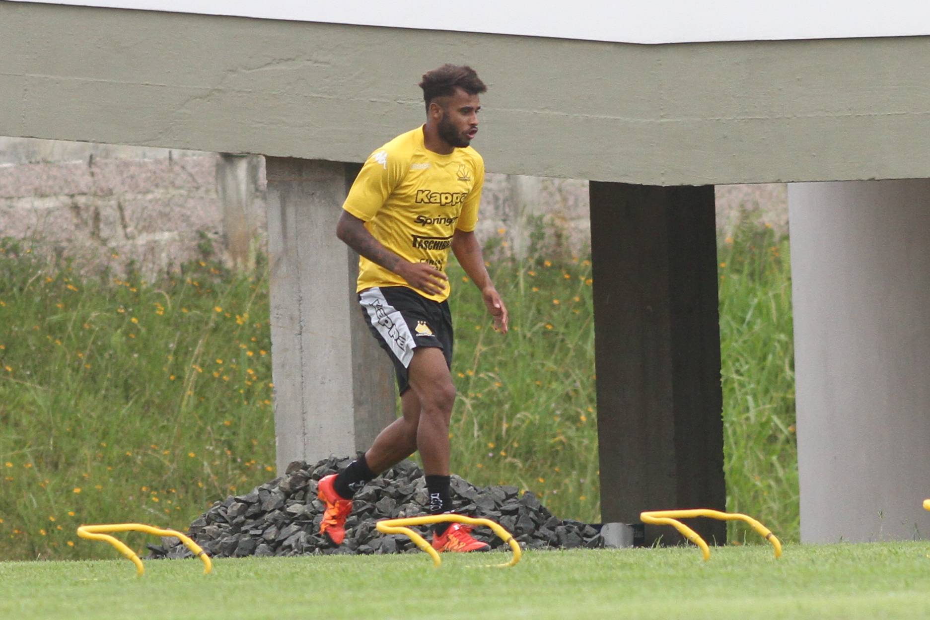Legenda: Élvis durante treino do Criciúma na tarde desta quinta-feira (07/01), no Centro de Treinamento, no bairro Cristo Redentor