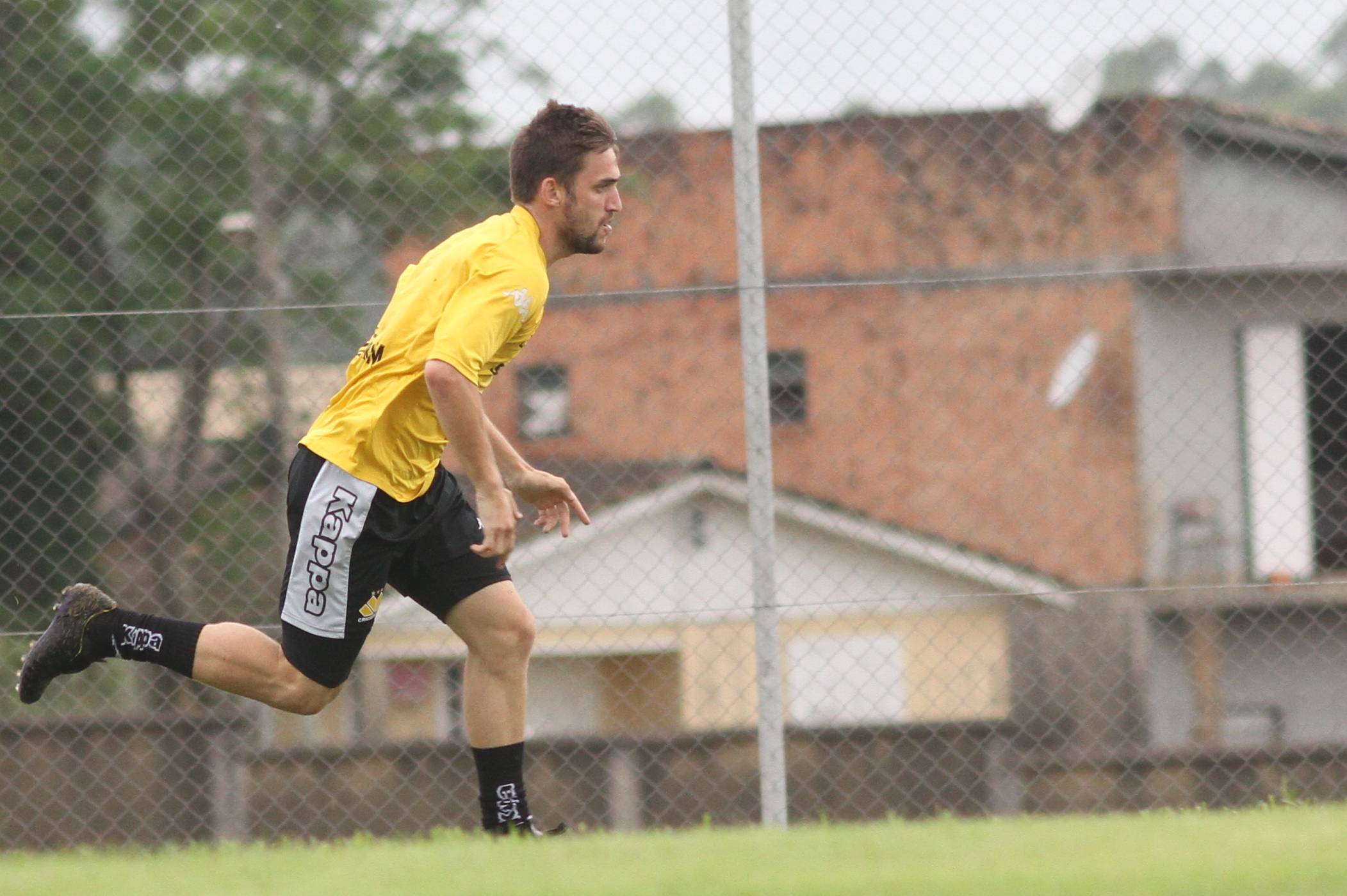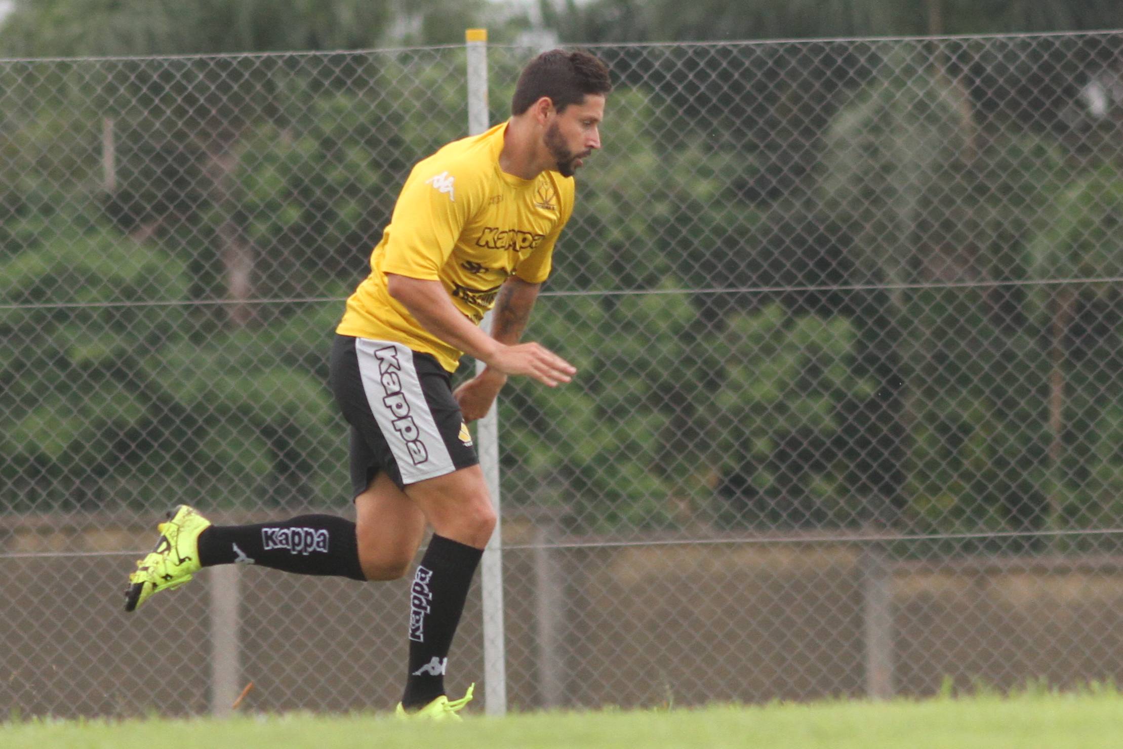 Legenda: Diego Giaretta durante treino do Criciúma na tarde desta quinta-feira (07/01), no Centro de Treinamento, no bairro Cristo Redentor