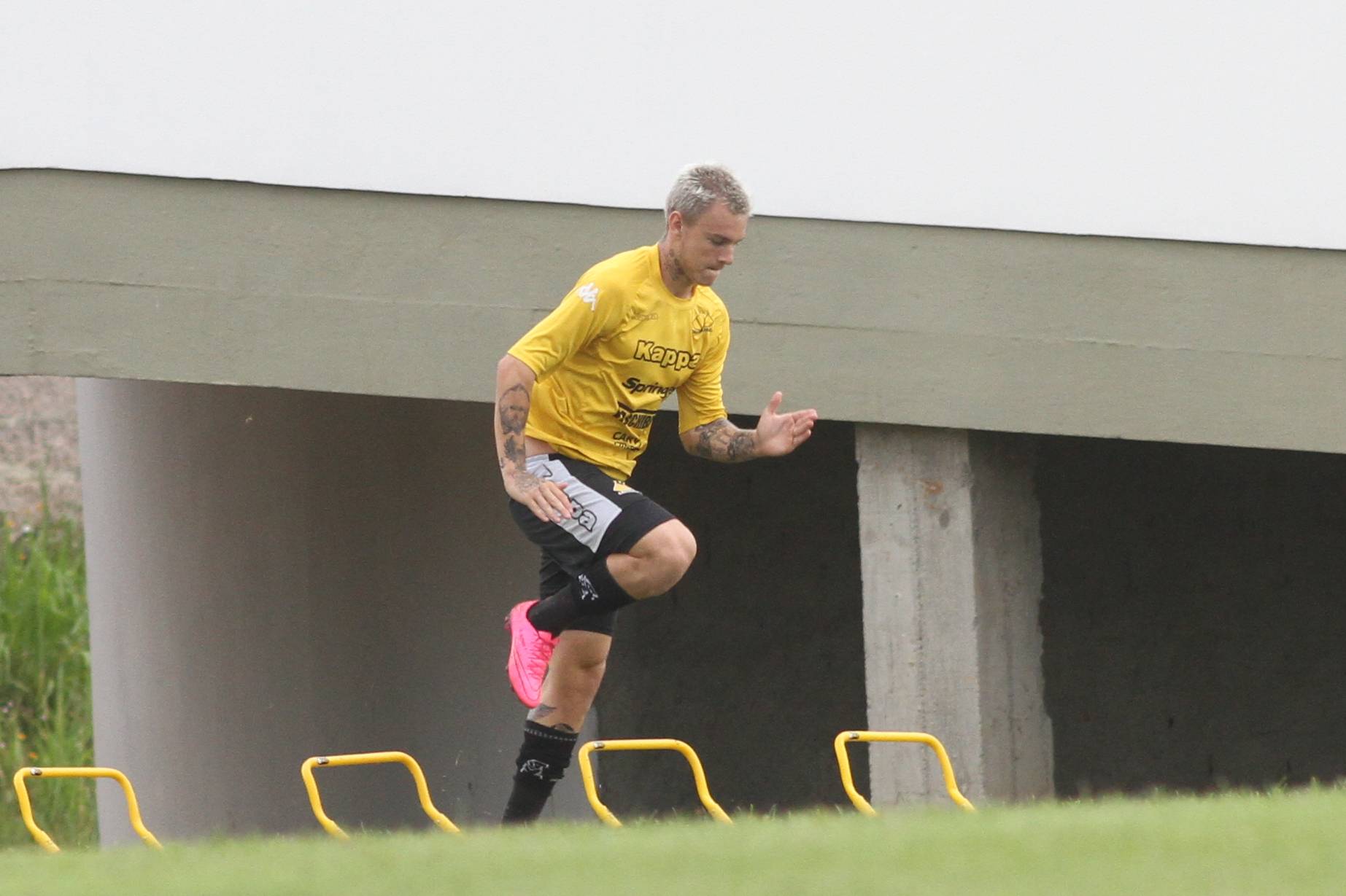 Legenda: Róger Guedes durante treino do Criciúma na tarde desta quinta-feira (07/01), no Centro de Treinamento, no bairro Cristo Redentor