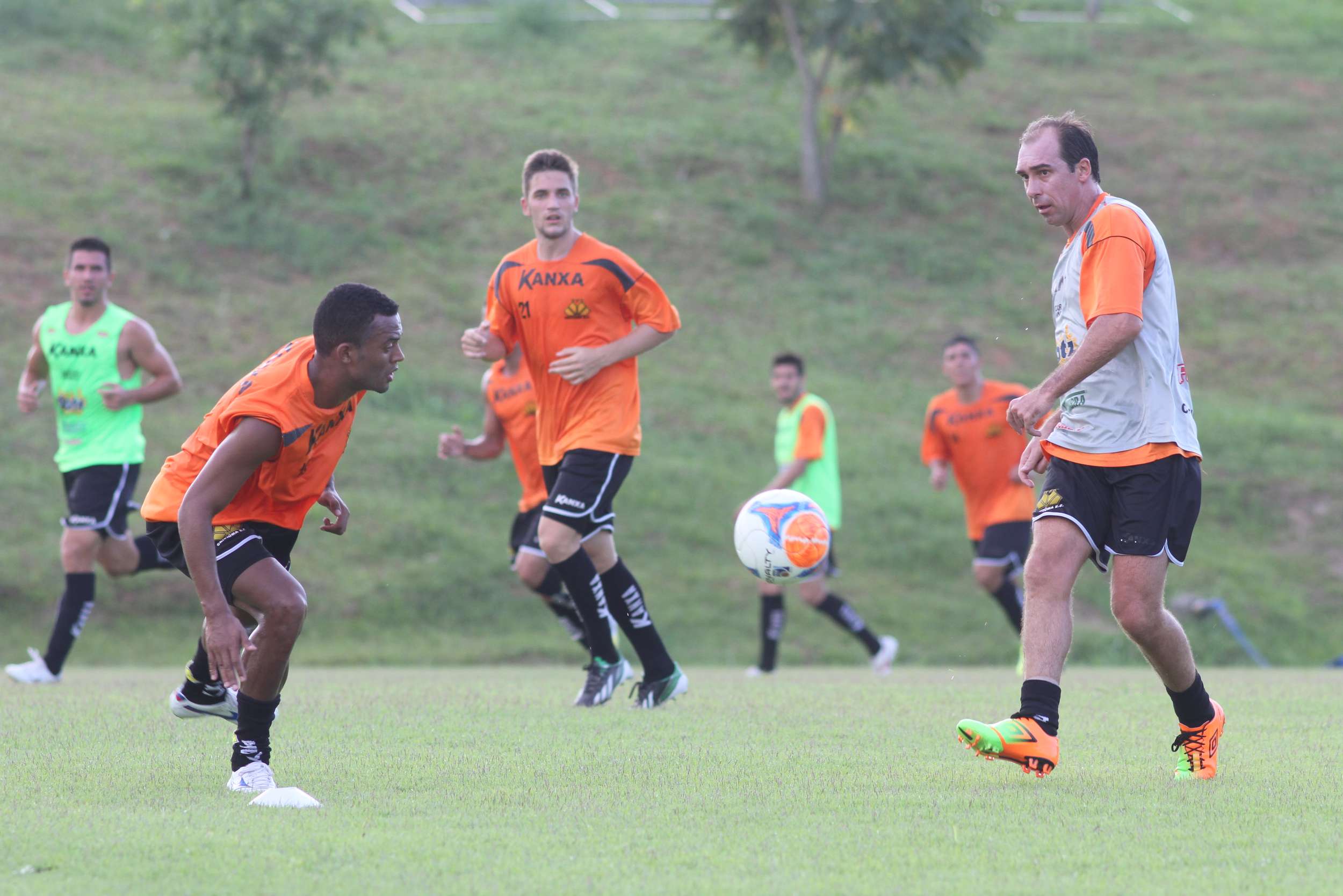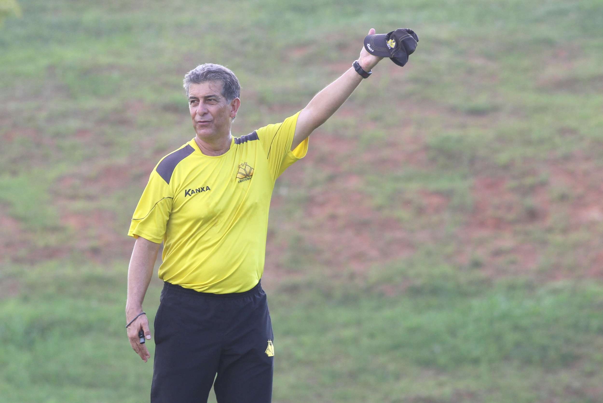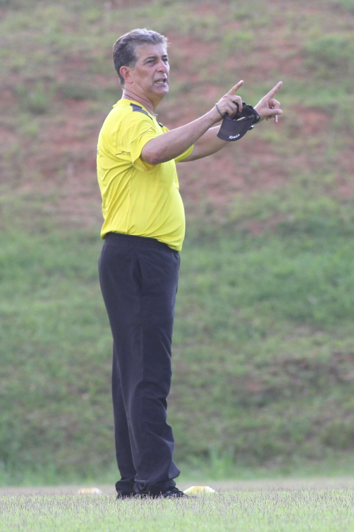 Legenda: Técnico Ricardo Drubscky durante treino no CT na tarde desta segunda-feira (03/02)
