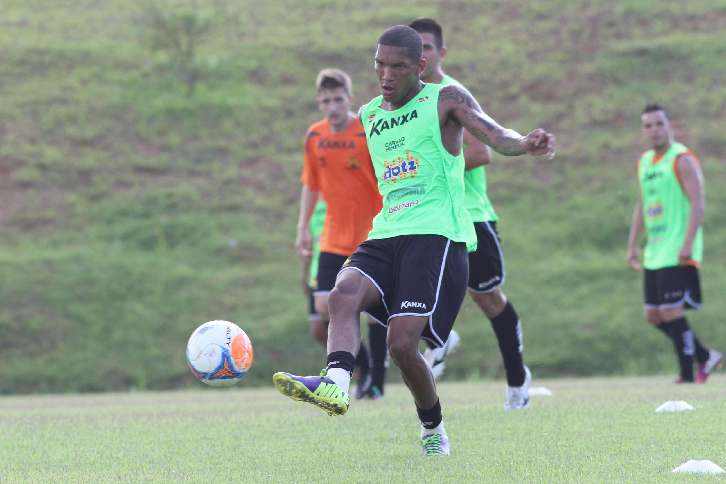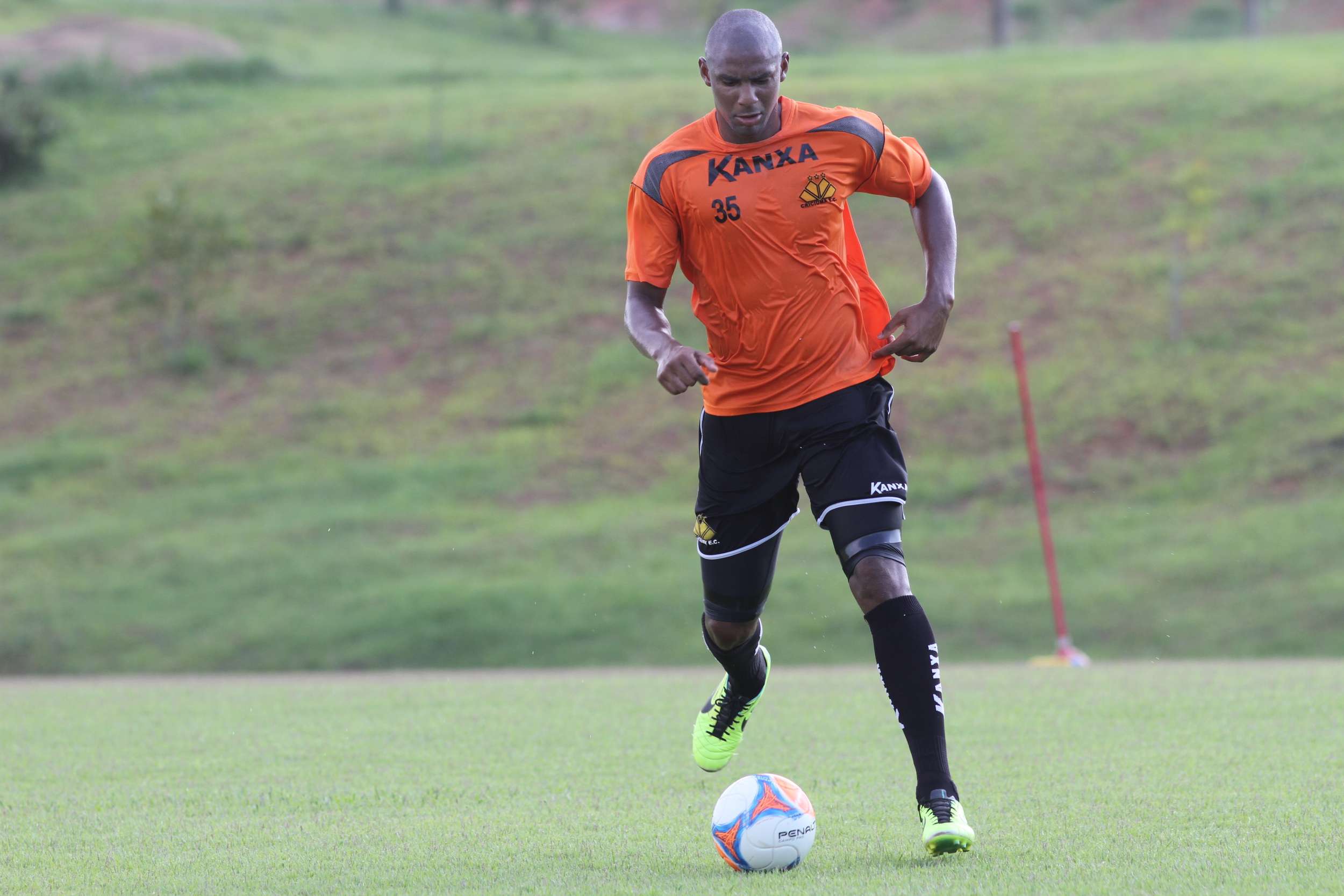Legenda: Atacante Fernando Karanga durante treino no CT na tarde desta segunda-feira (03/02)
