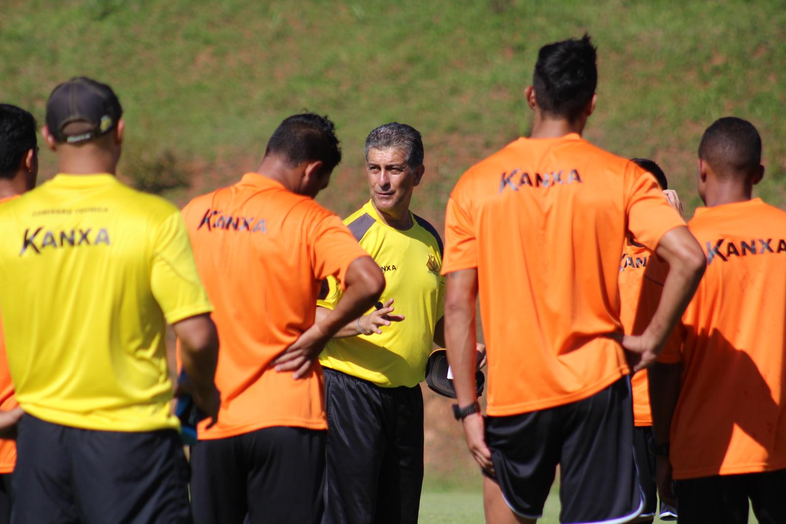 Legenda: Técnico Ricardo Drubscky orienta time durante treino no CT