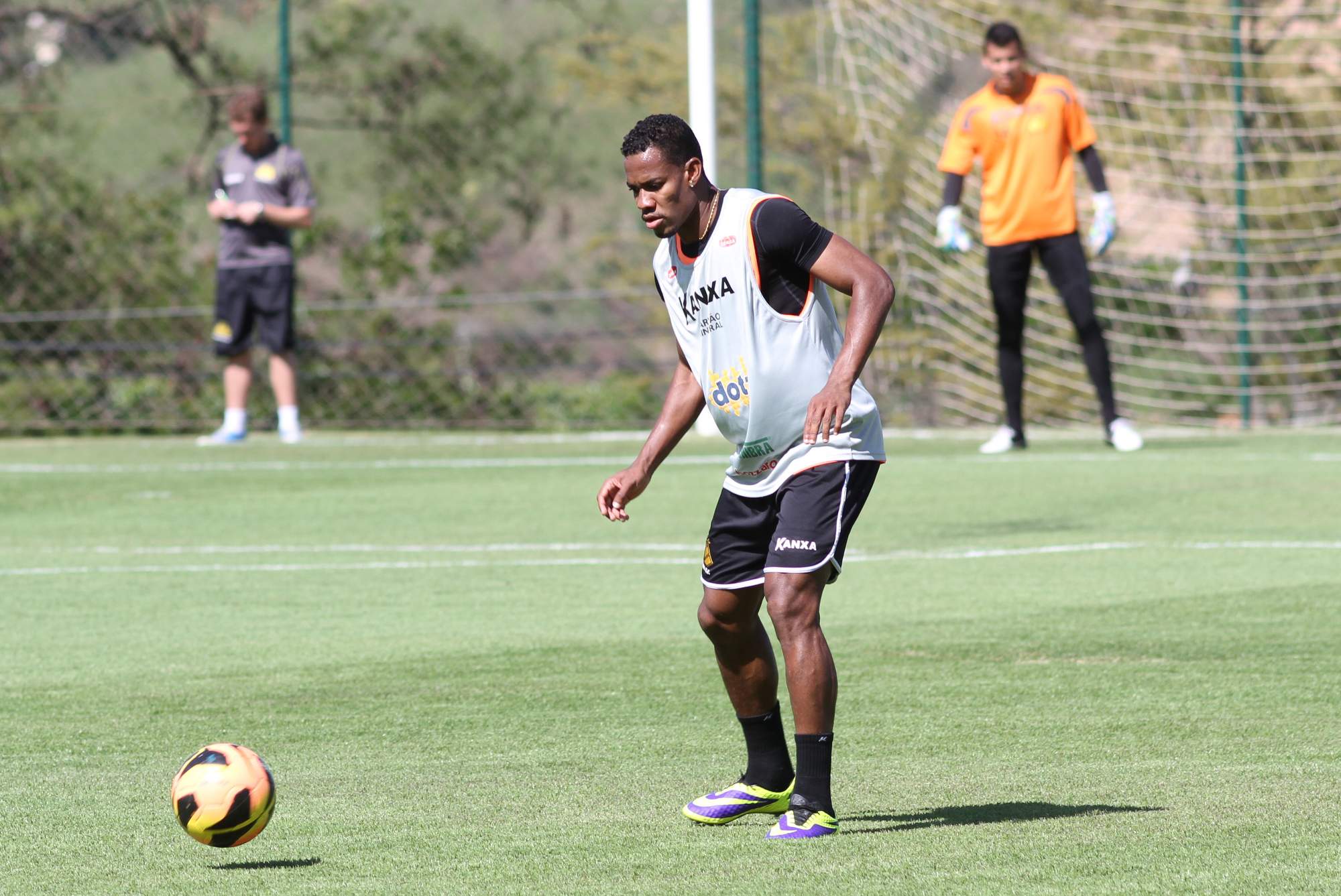 Legenda: Atacante Lins durante treino do Criciúma na Cidade do Galo, em Belo Horizonte (MG), na tarde desta sexta-feira (25/10)
