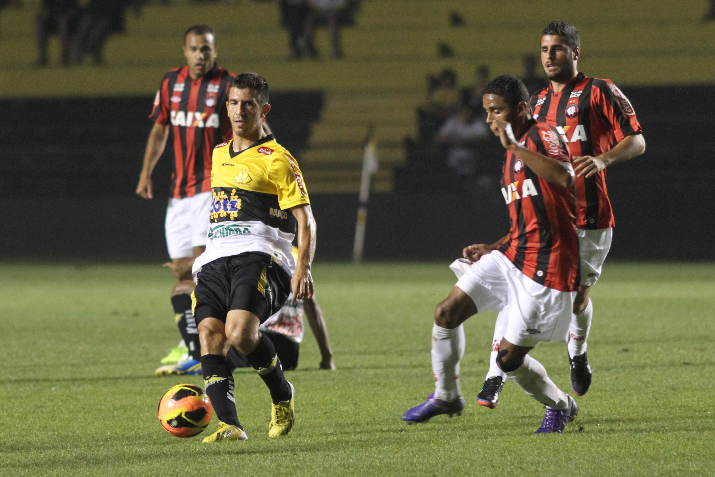 O Tigre começou a partida empurrando o Atlético-PR para o campo de defesa e não demorou para abrir o placar. Logo aos seis minutos de jogo, Ricardinho cobrou falta na área e o zagueiro Fábio Ferreira apenas desviou de cabeça para abrir o placar para a equipe tricolor. A pressão sobre o time paranaense continuou e o Criciúma ainda criou várias oportunidades até ampliar o marcador, aos 28 minutos. A defesa do Atlético afastou mal, João Vitor recuperou a bola, invadiu a área e foi derrubado. O árbitro marcou pênalti. Wellington Paulista cobrou no canto direito para marcar o segundo gol do Tigre.