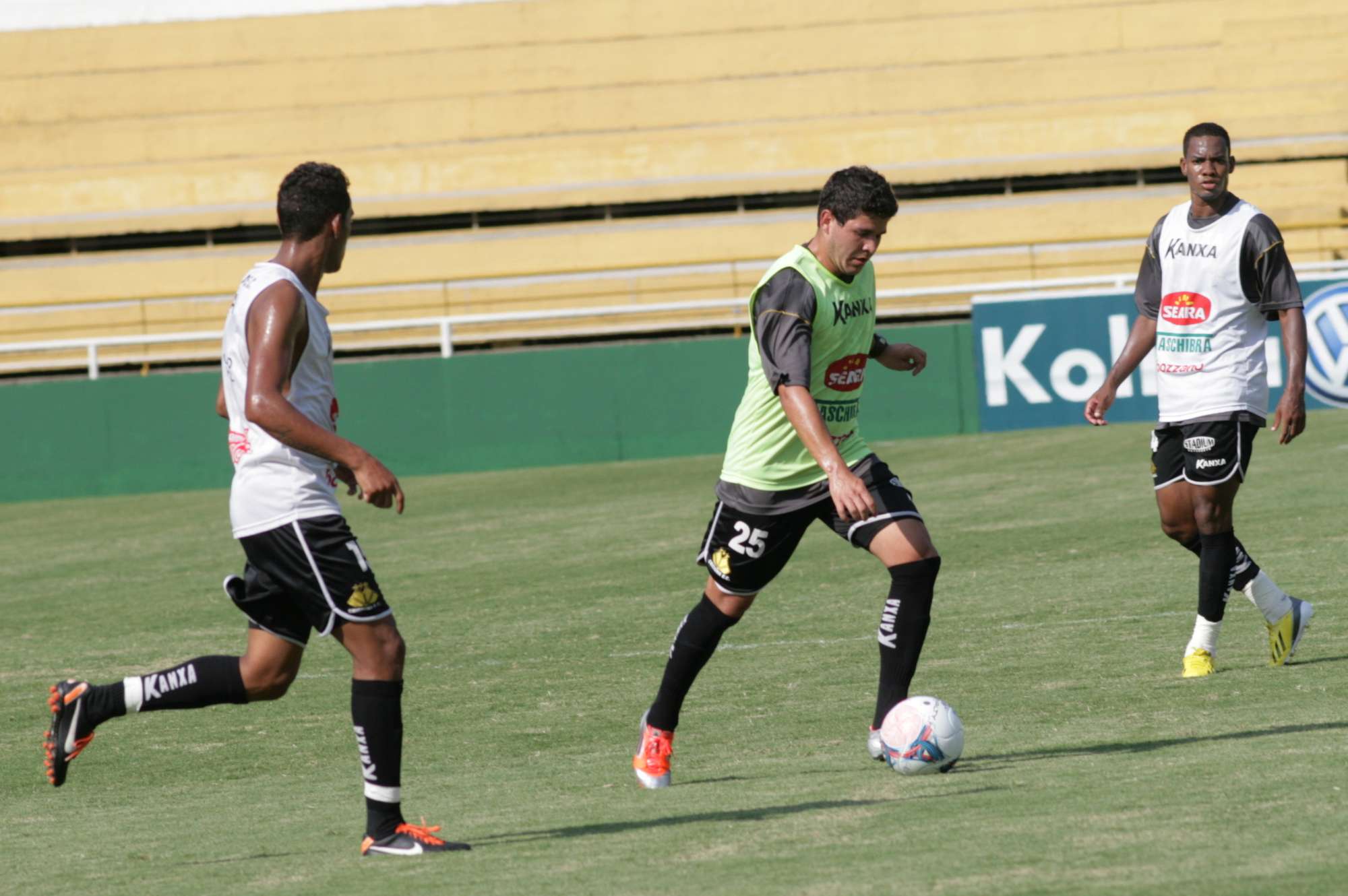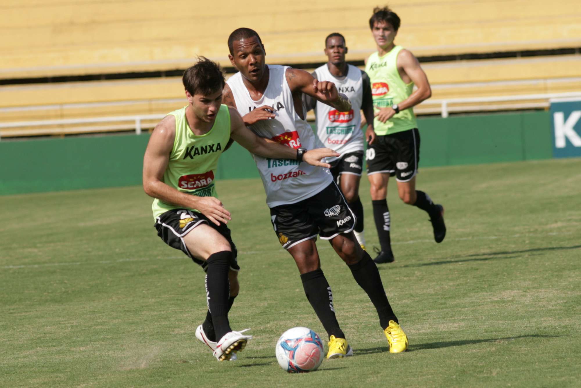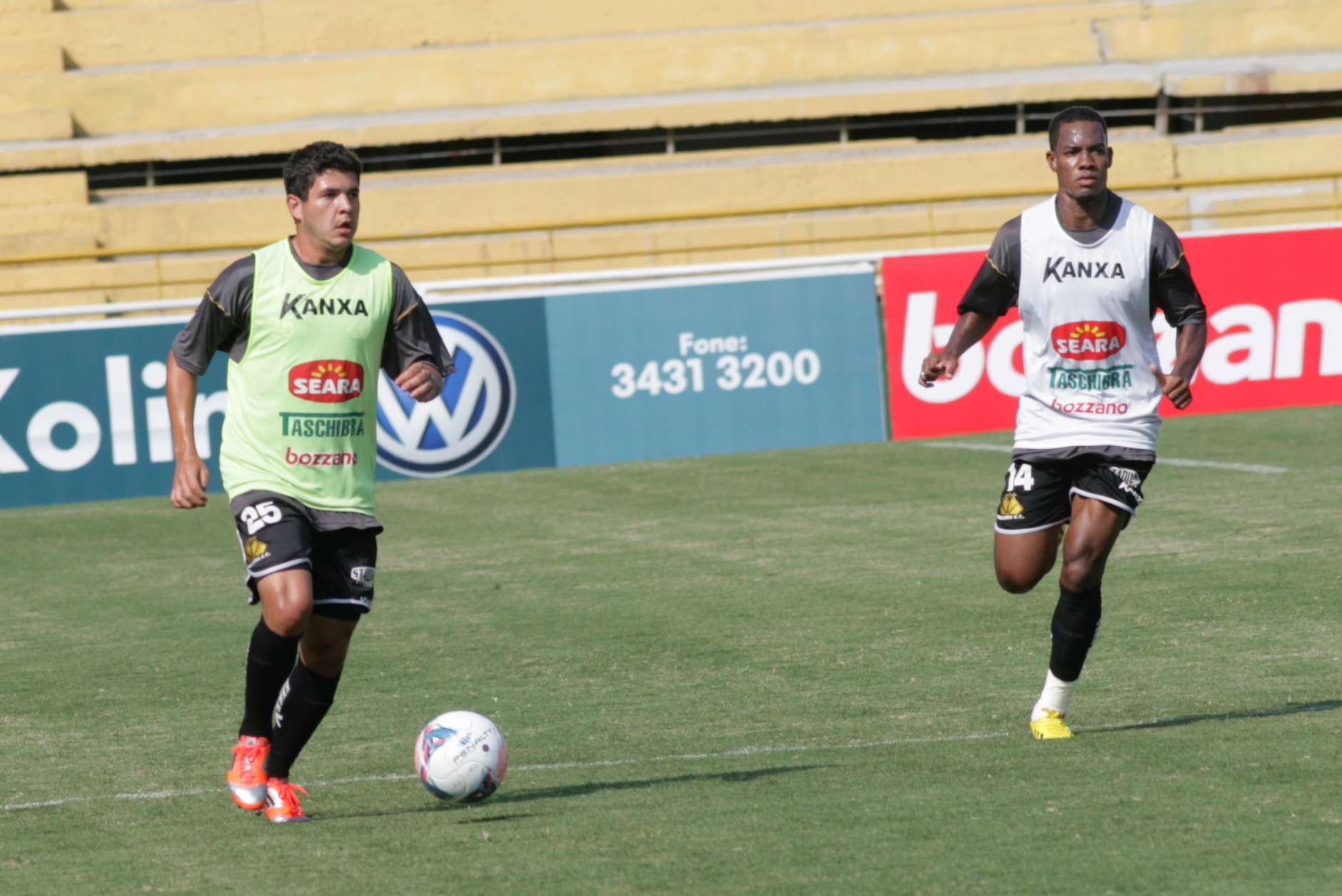 Legenda: André Gava e Everton Luiz durante treino do Criciúma na tarde desta quinta-feira (17/01) no estádio Heriberto Hülse.