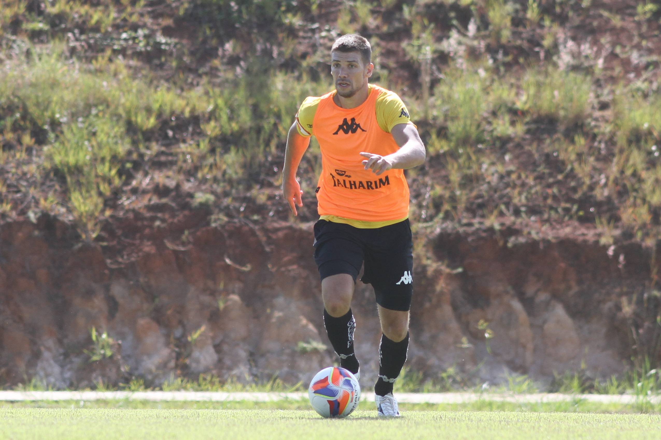 Legenda: João Afonso durante treino do Criciúma na tarde desta sexta-feira (22/01), no Centro de Treinamento, no bairro Cristo Redentor