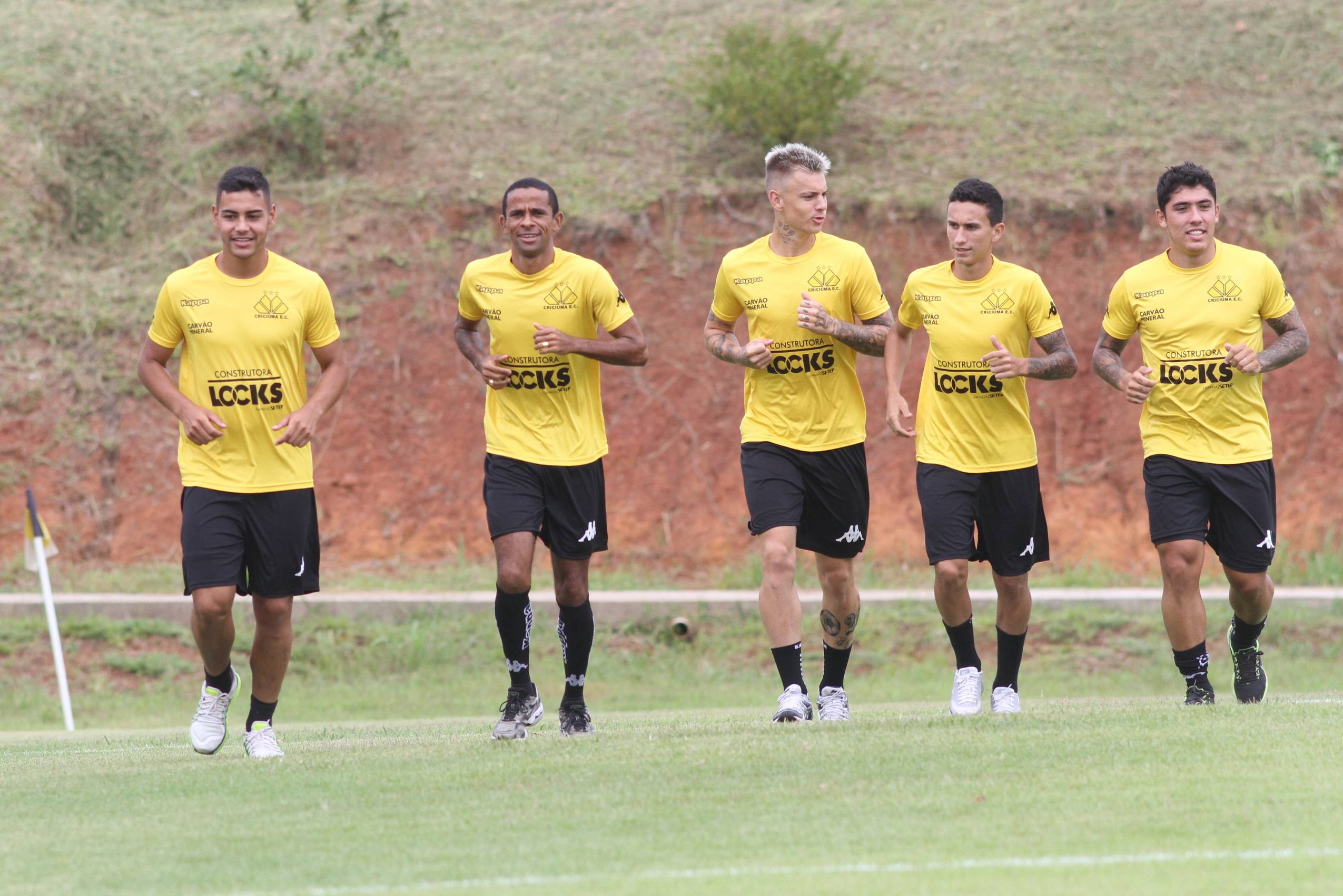 Legenda: Atletas durante treino do Criciúma na tarde desta quinta-feira (28/01), no Centro de Treinamento, no bairro Cristo Redentor