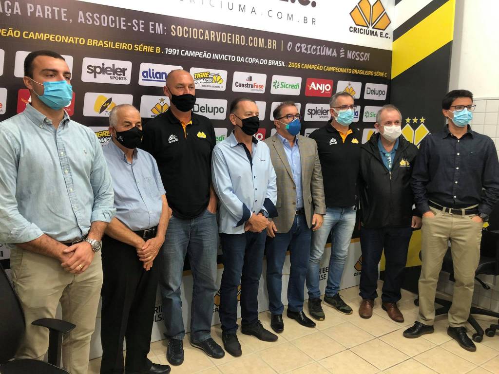 Presidente Anselmo Freitas apresenta oficialmente o executivo de futebol Juliano camargo e o coordenador geral Wilsão. Foto: Celso da Luz/www.criciuma.com.br