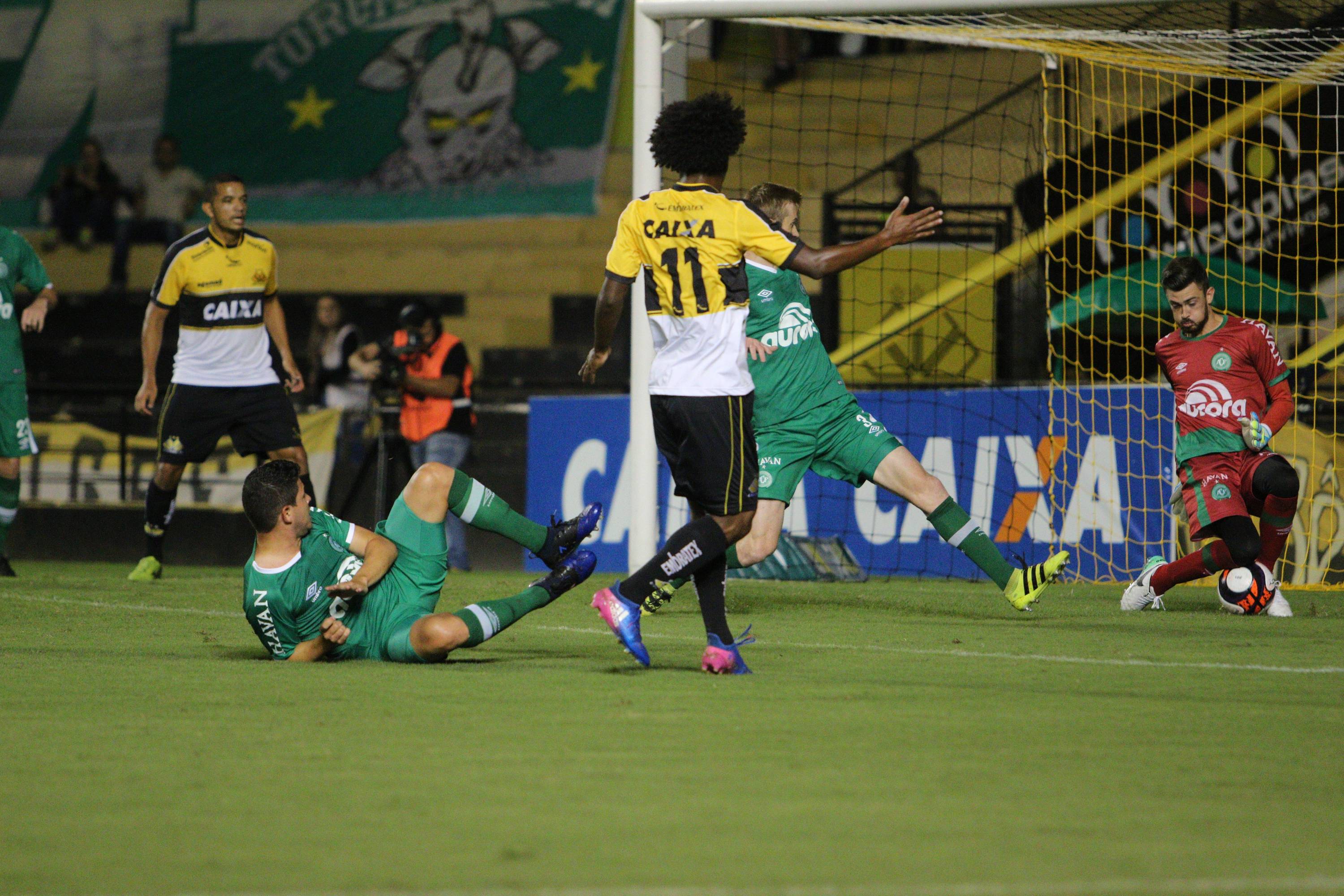 Legenda: Raphael Silva durante o jogo entre Criciúma e Chapecoense, na noite deste domingo (23/04), no estádio Heriberto Hülse Fotos: Caio Marcelo/www.criciuma.com.br Download