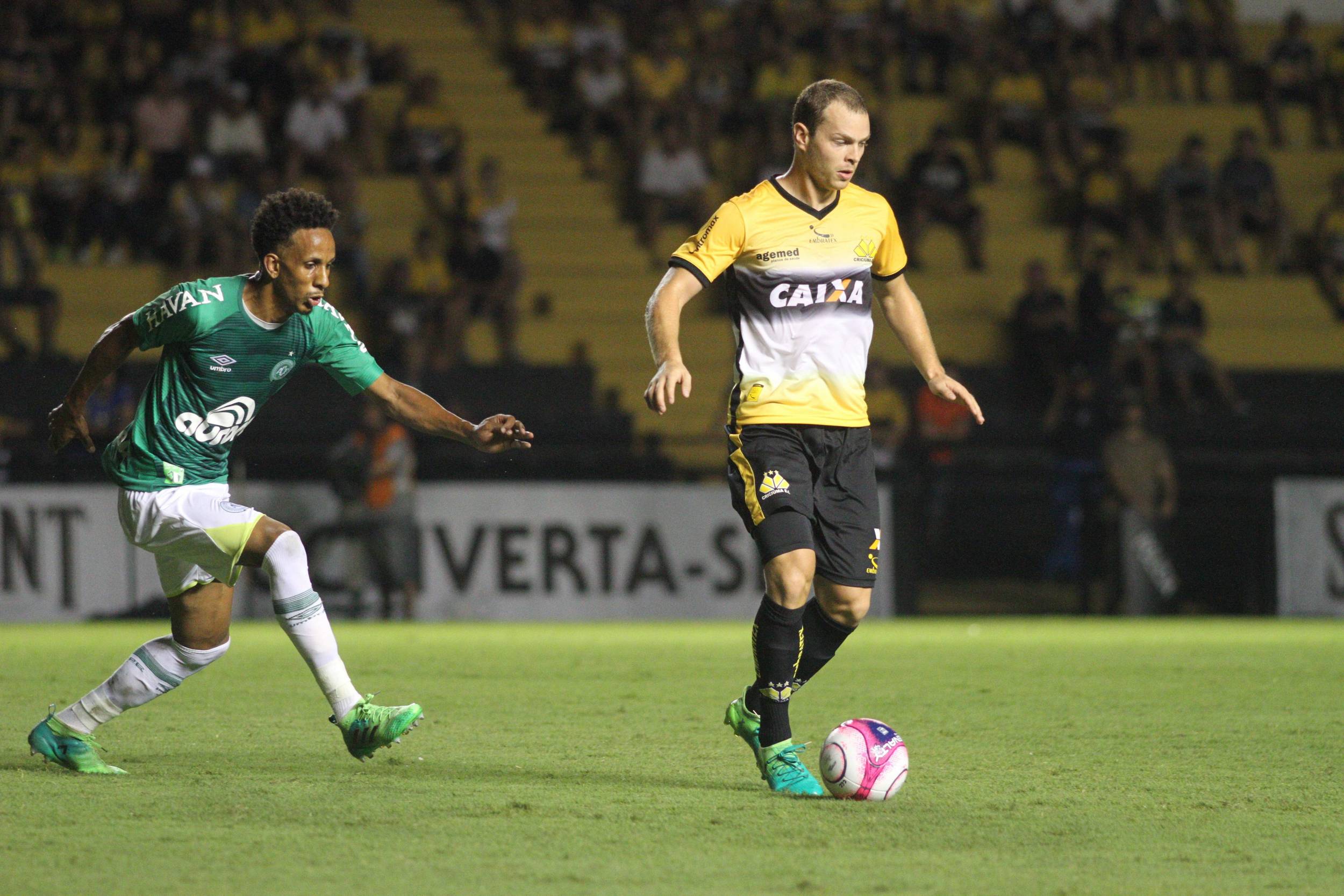Legenda: Momentos do jogo entre Criciúma e Chapecoense, realizado na noite desta quarta-feira (24/01), no estádio Heriberto Hülse Fotos: Caio Marcelo/www.criciuma.com.br Download