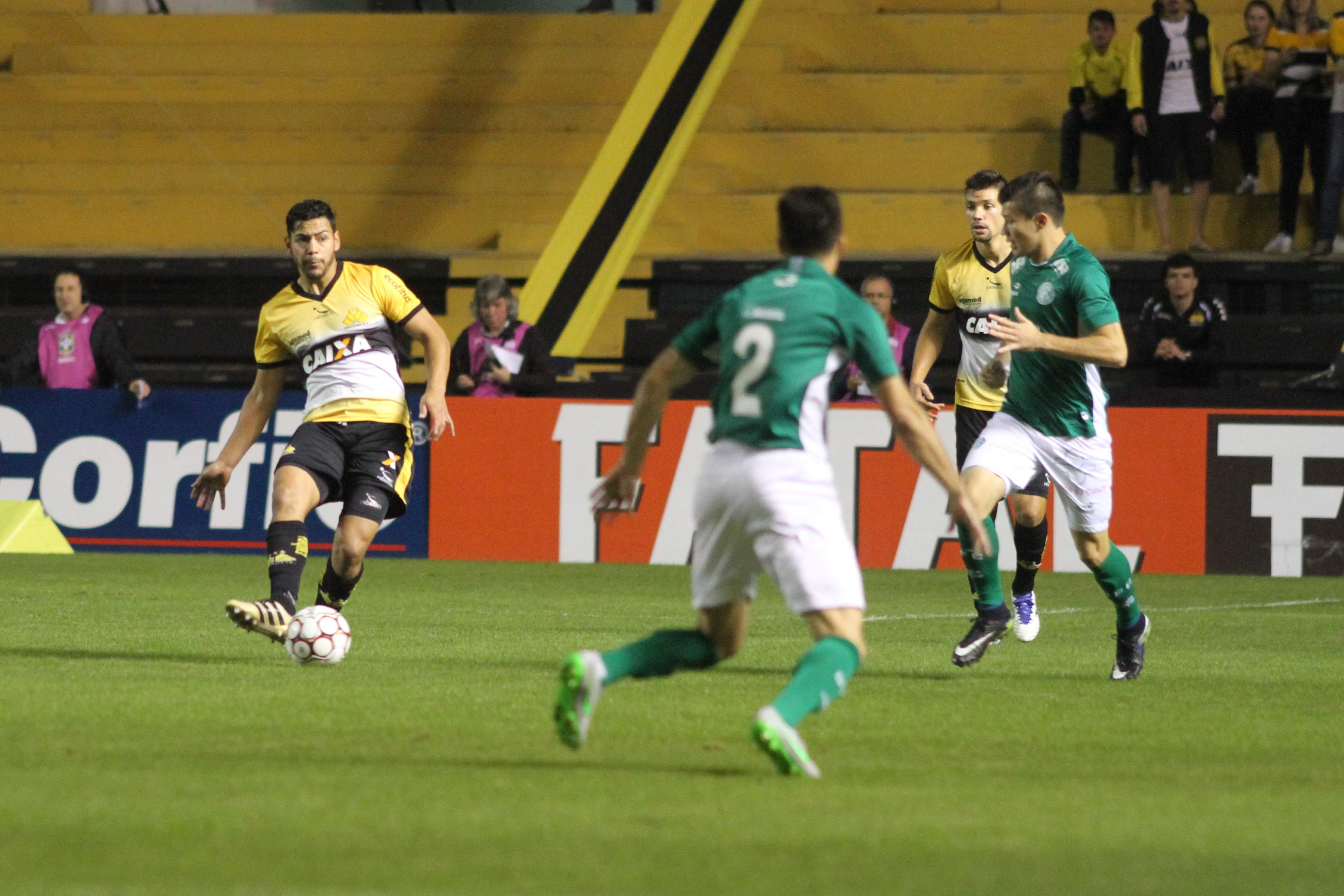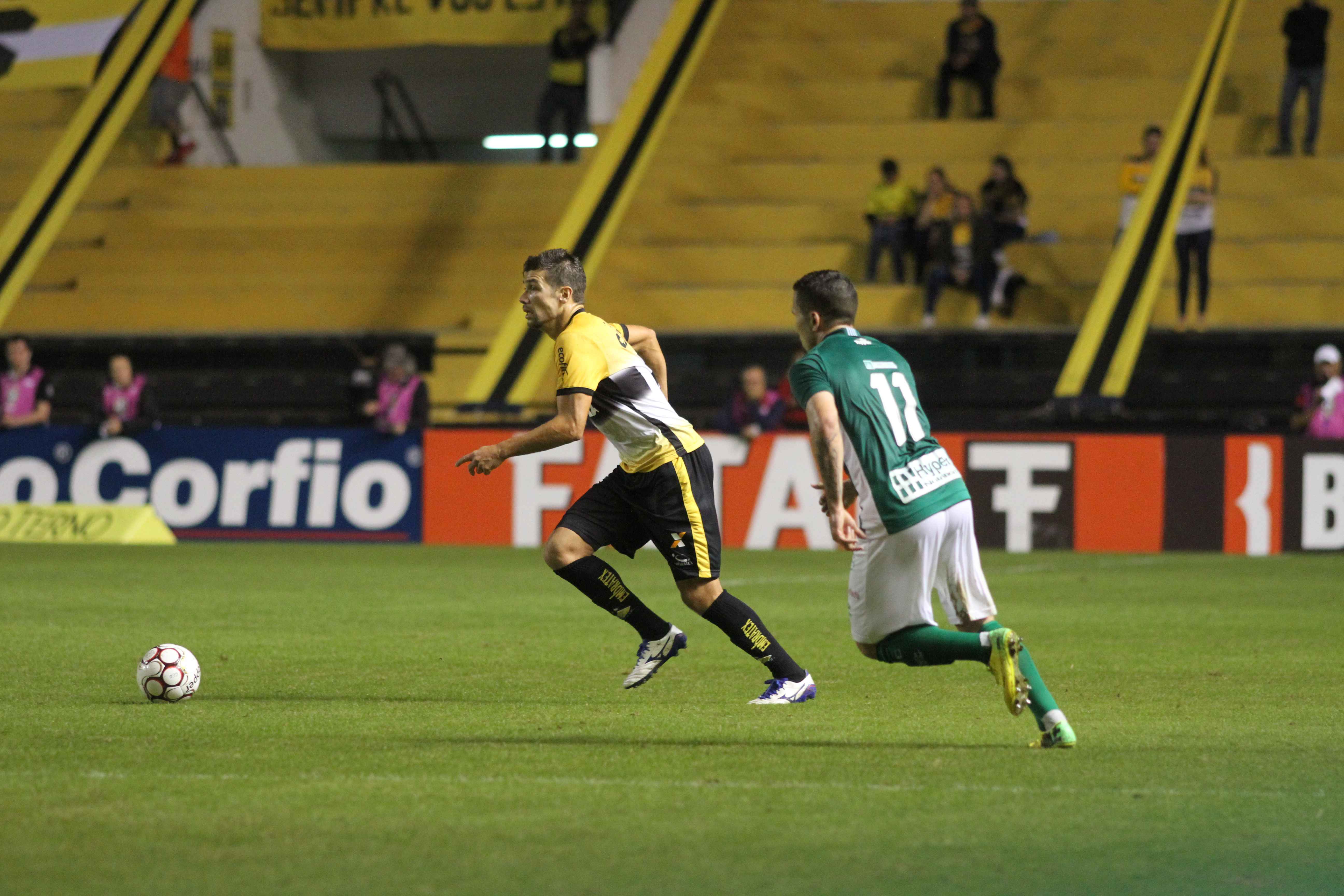 Legenda: Lance durante o jogo entre Criciúma e Guarani, em jogo realizado na noite desta sexta-feira (16/06), no estádio Heriberto Hülse Fotos: Caio Marcelo/www.criciuma.com.br Download