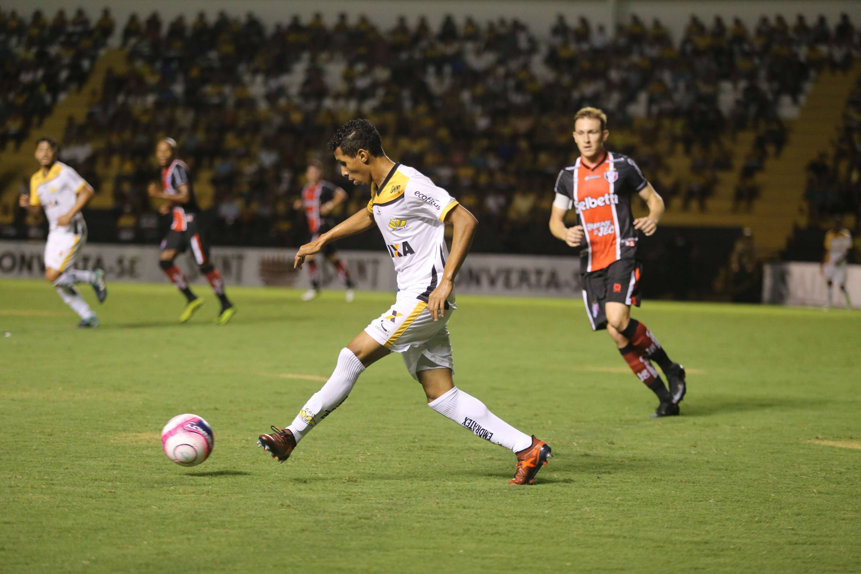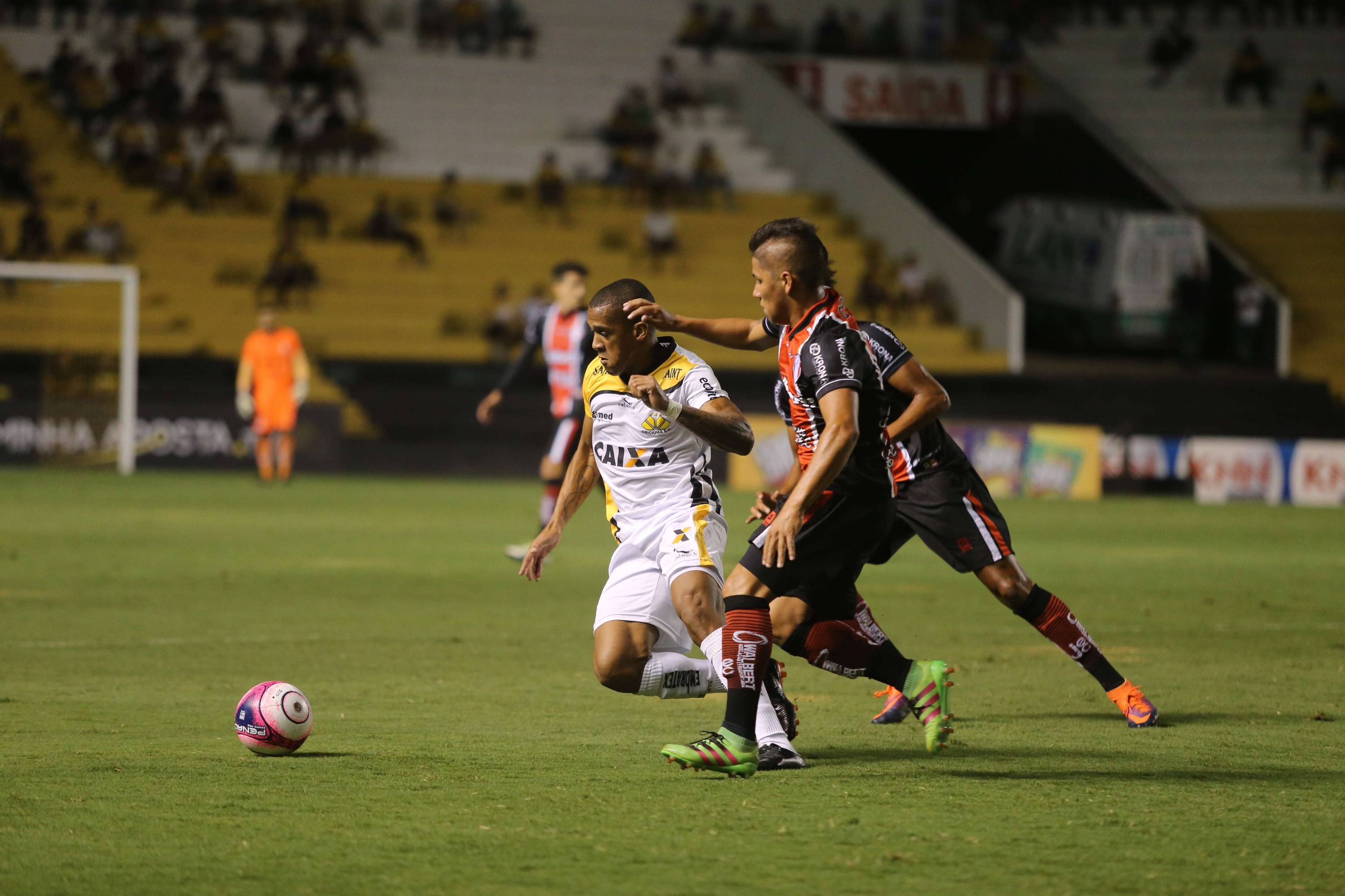 Legenda: Momentos do jogo entre Criciúma e Joinville, na noite desta quarta-feira, no estádio Heriberto Hülse Fotos: Caio Marcelo/www.criciuma.com.br Download