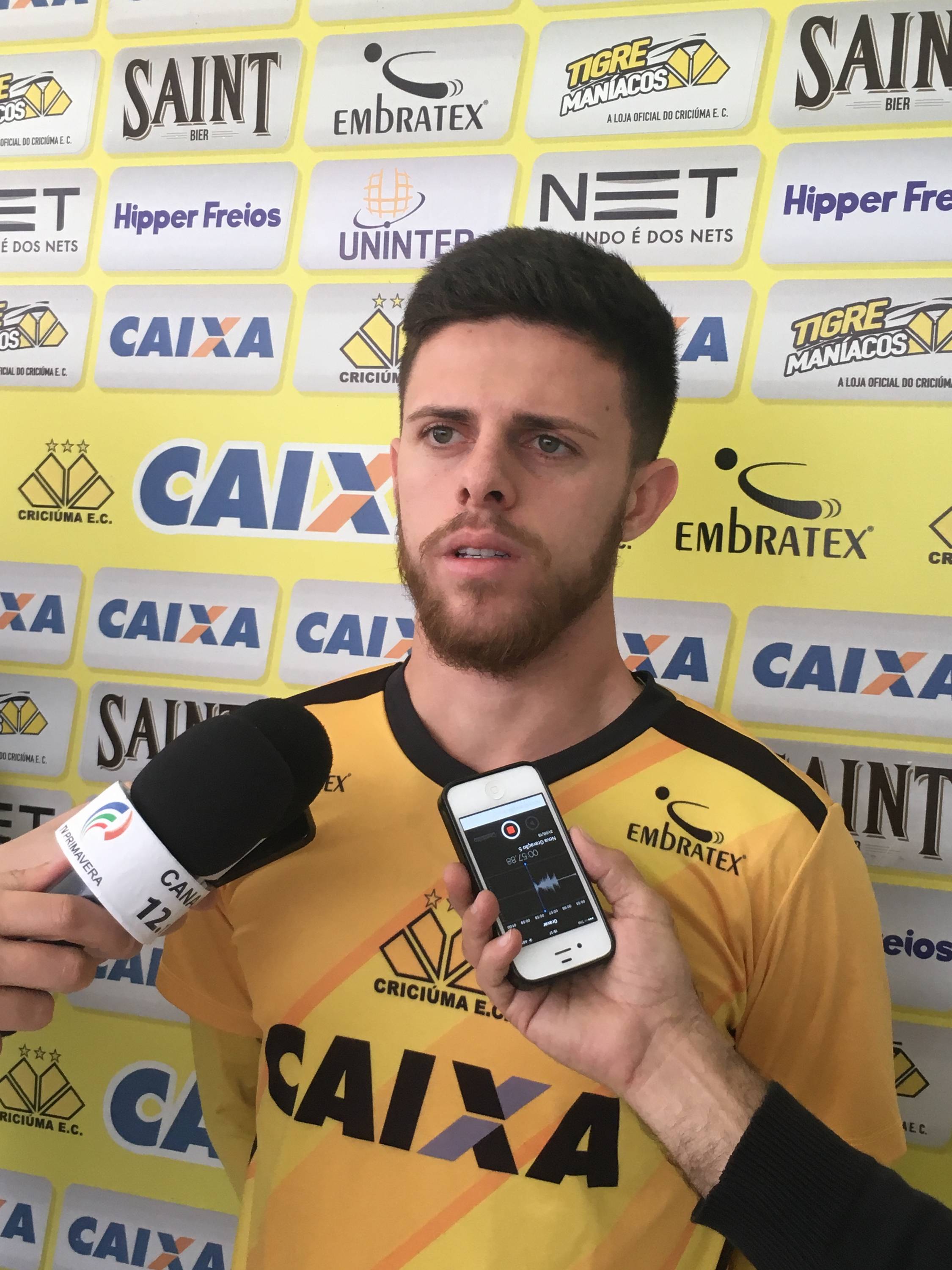Legenda: Entrevista coletiva com o meio campista Eduardo, realizada na tarde desta sexta-feira (31/08), no Centro de Treinamento Antenor Angeloni, no bairro Cristo Redentor Fotos: Fernando Ribeiro/www.criciuma.com.br Download