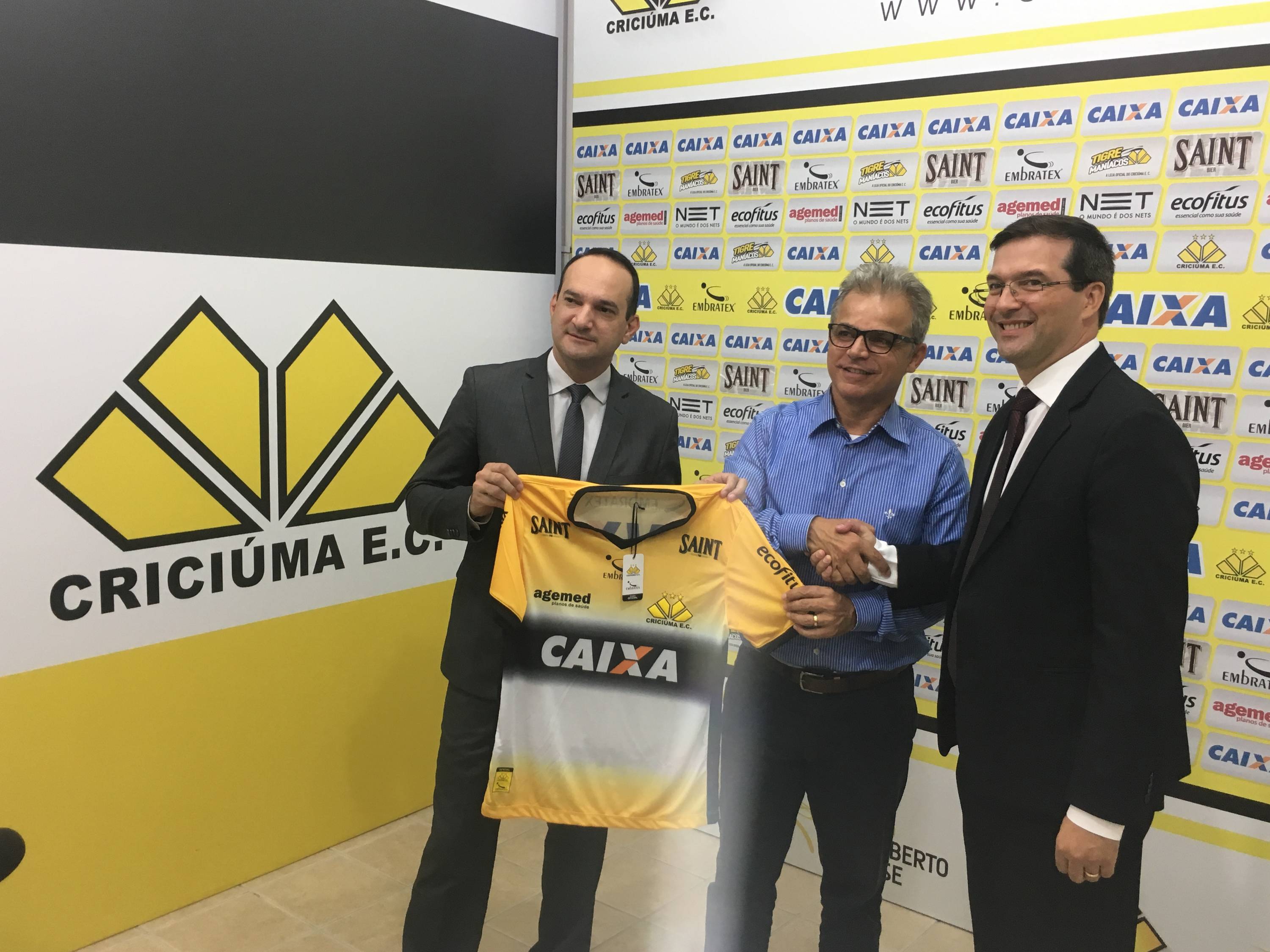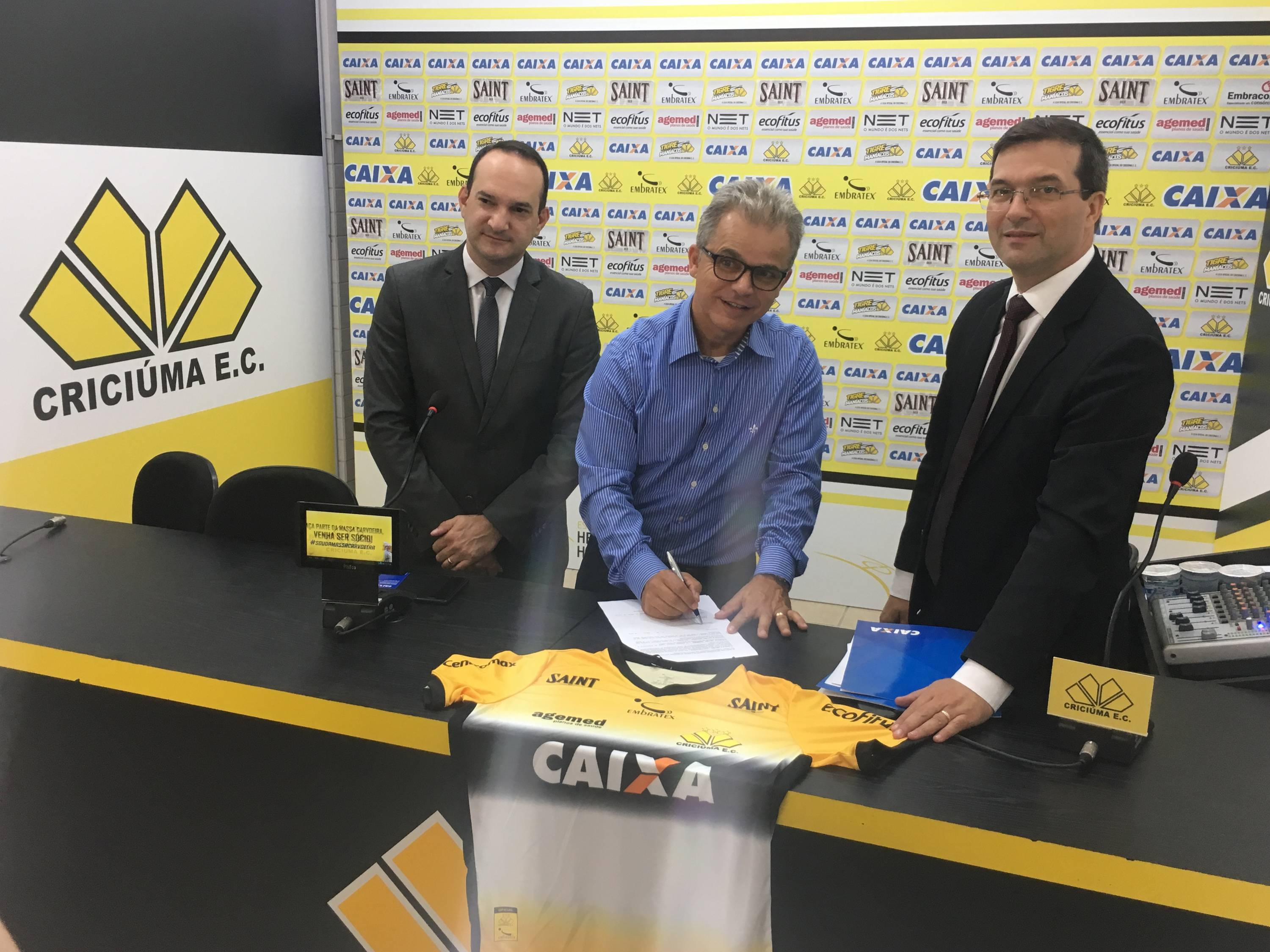 Legenda: Assinatura de contrato do Criciúma com a Caixa Econômica Federal ocorreu na manhã desta terça-feira (27/03), na Sala de Imprensa Clésio Búrigo, no estádio Heriberto Hülse Fotos: Fernando Ribeiro/www.criciuma.com.br Download