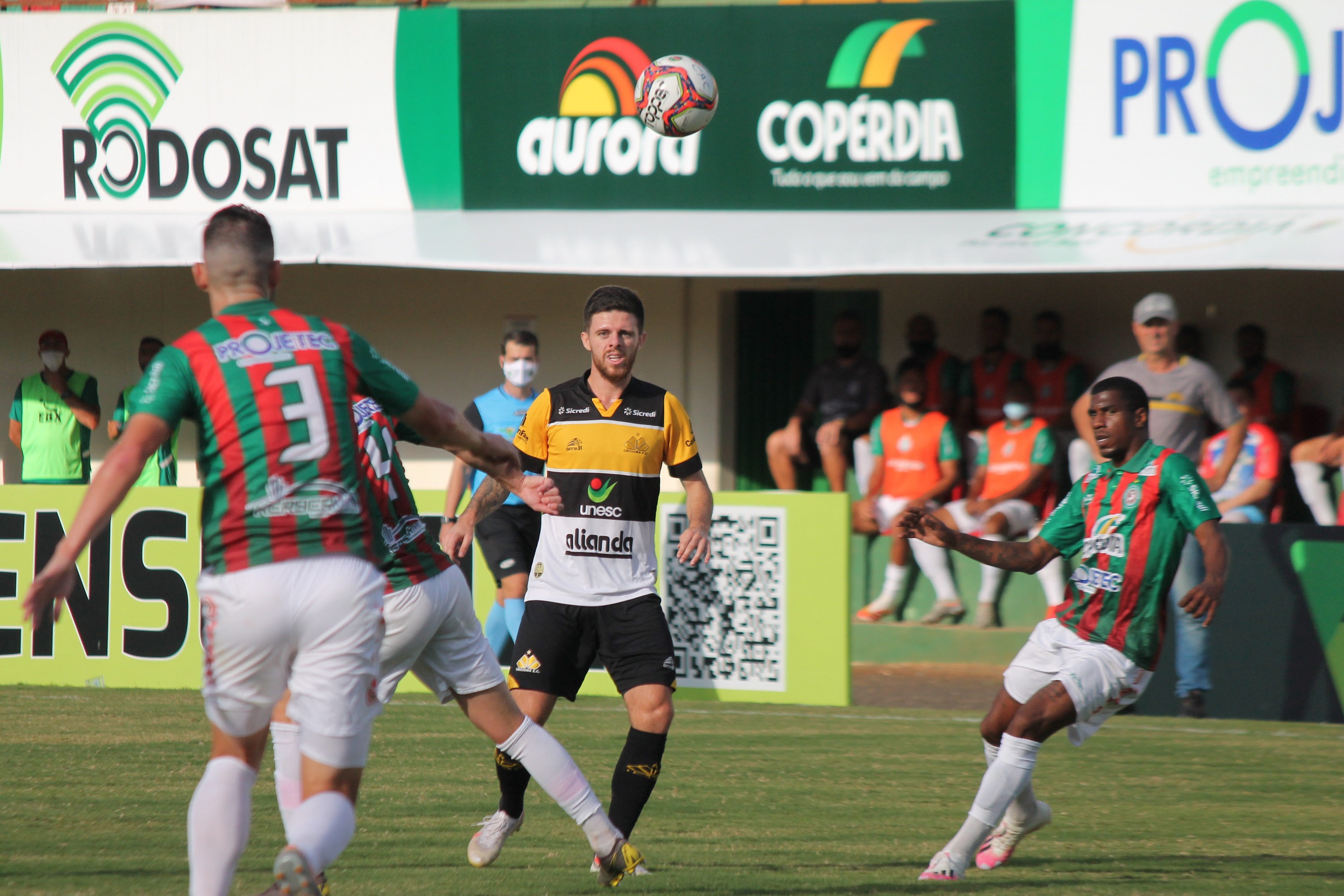 Legenda: Momentos do jogo entre Concórdia x Criciúma na tarde deste domingo (18/04).
