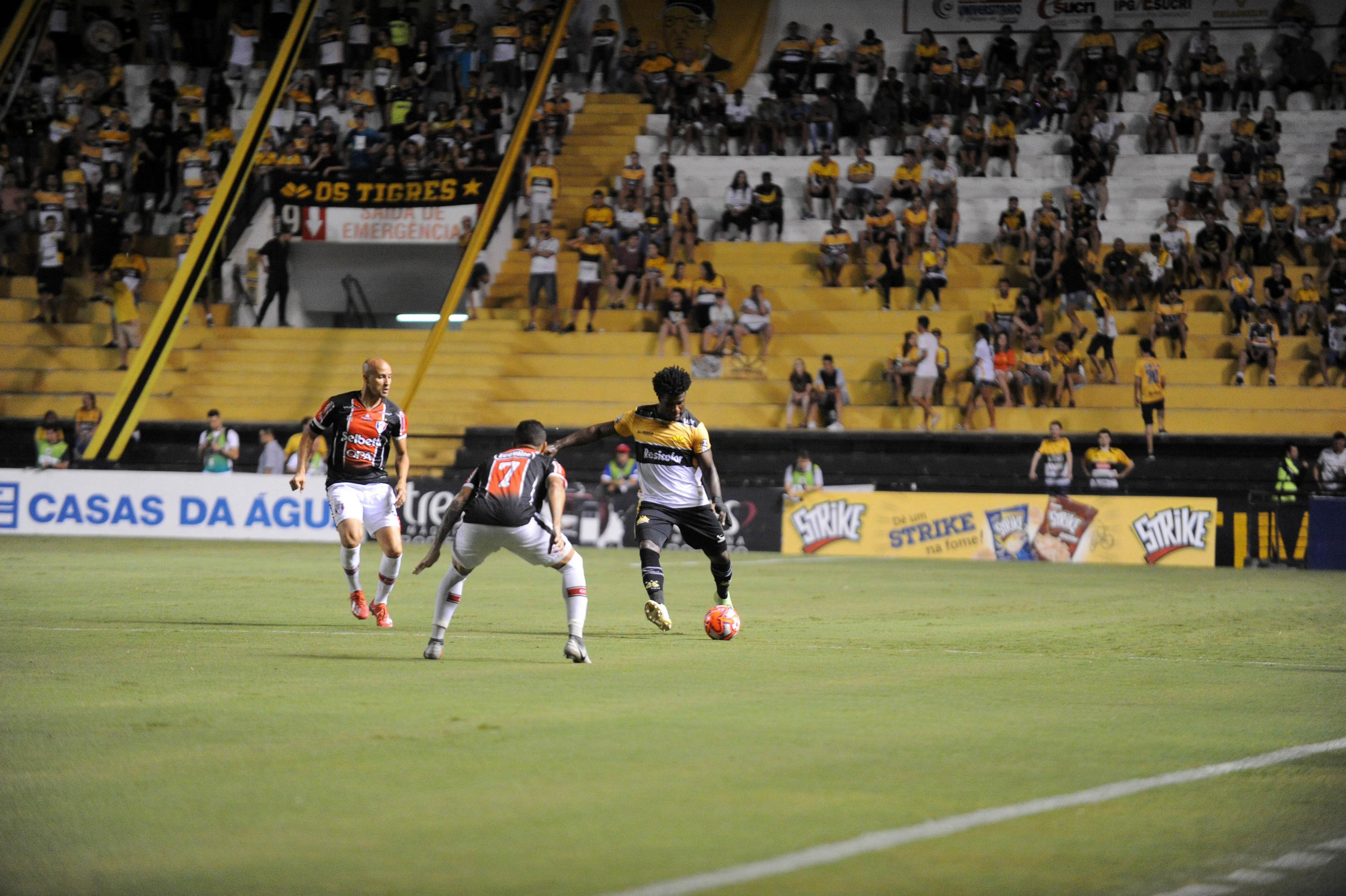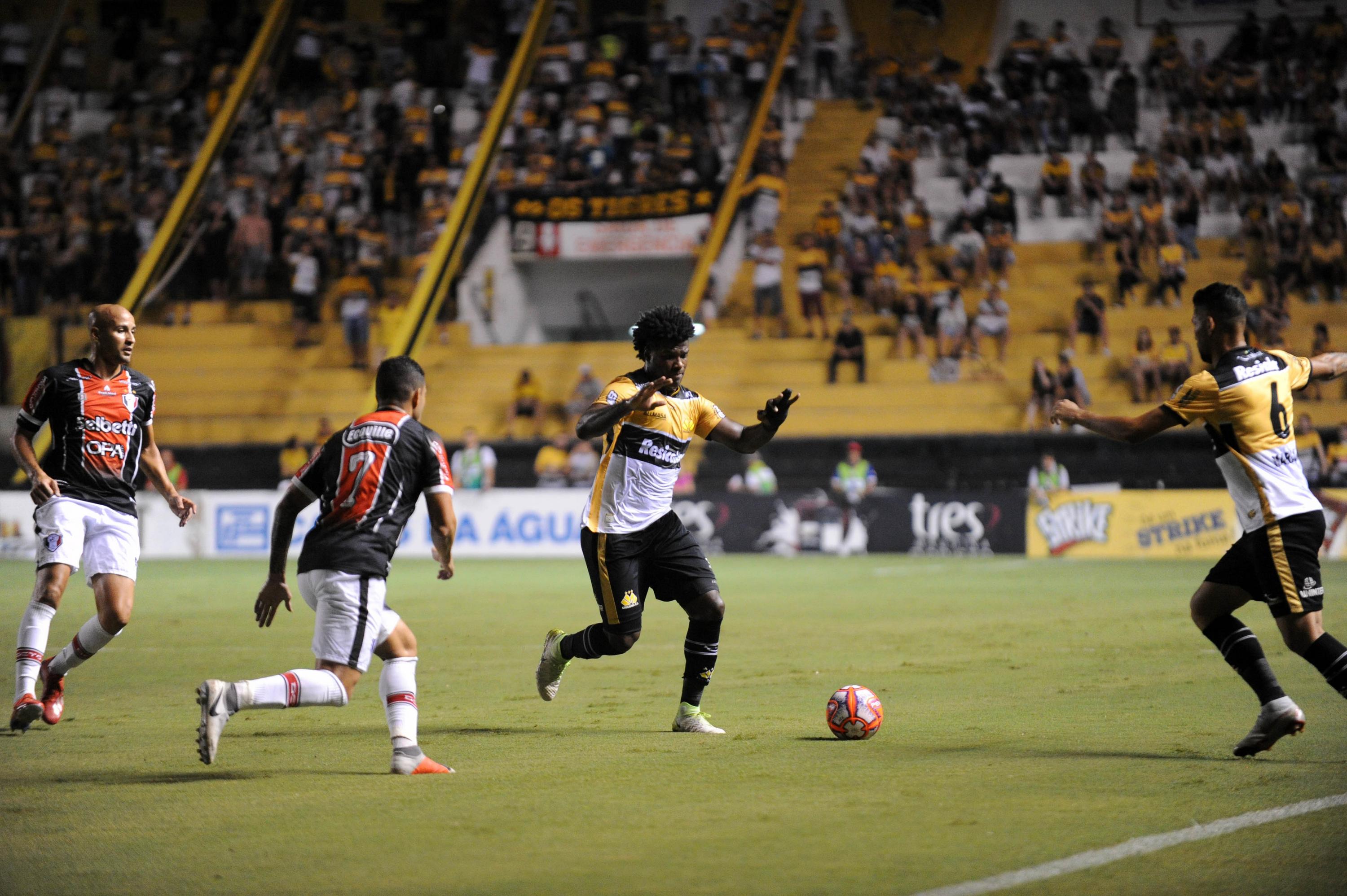 Legenda: Momentos do jogo entre Criciúma e Joinville na noite desta quarta-feira (03/04).