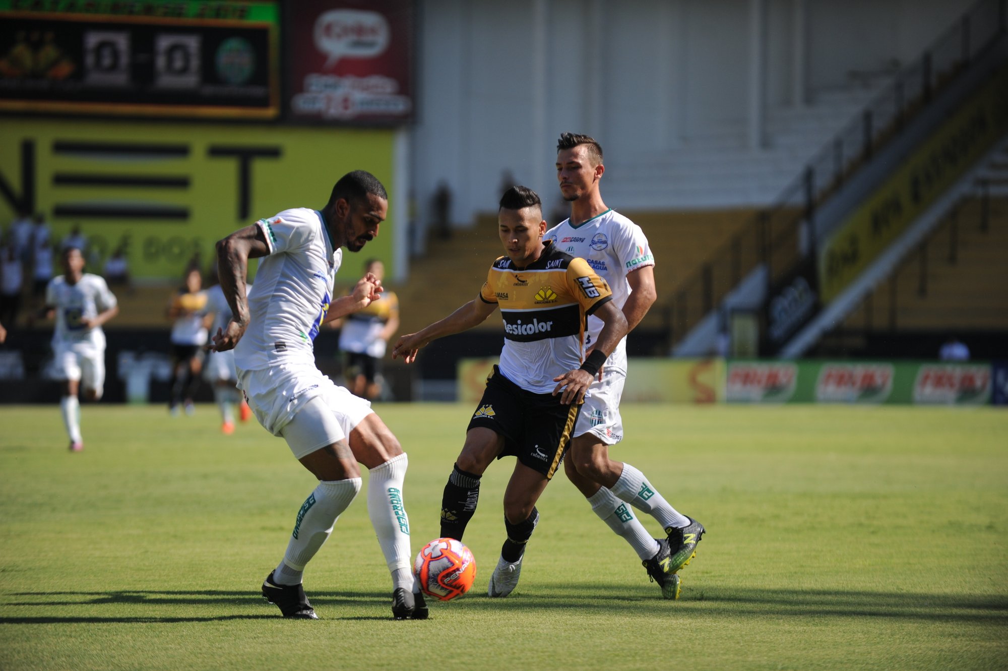 Legenda: Momentos do jogo entre Criciúma e Metropolitano no estádio Heriberto Hulse