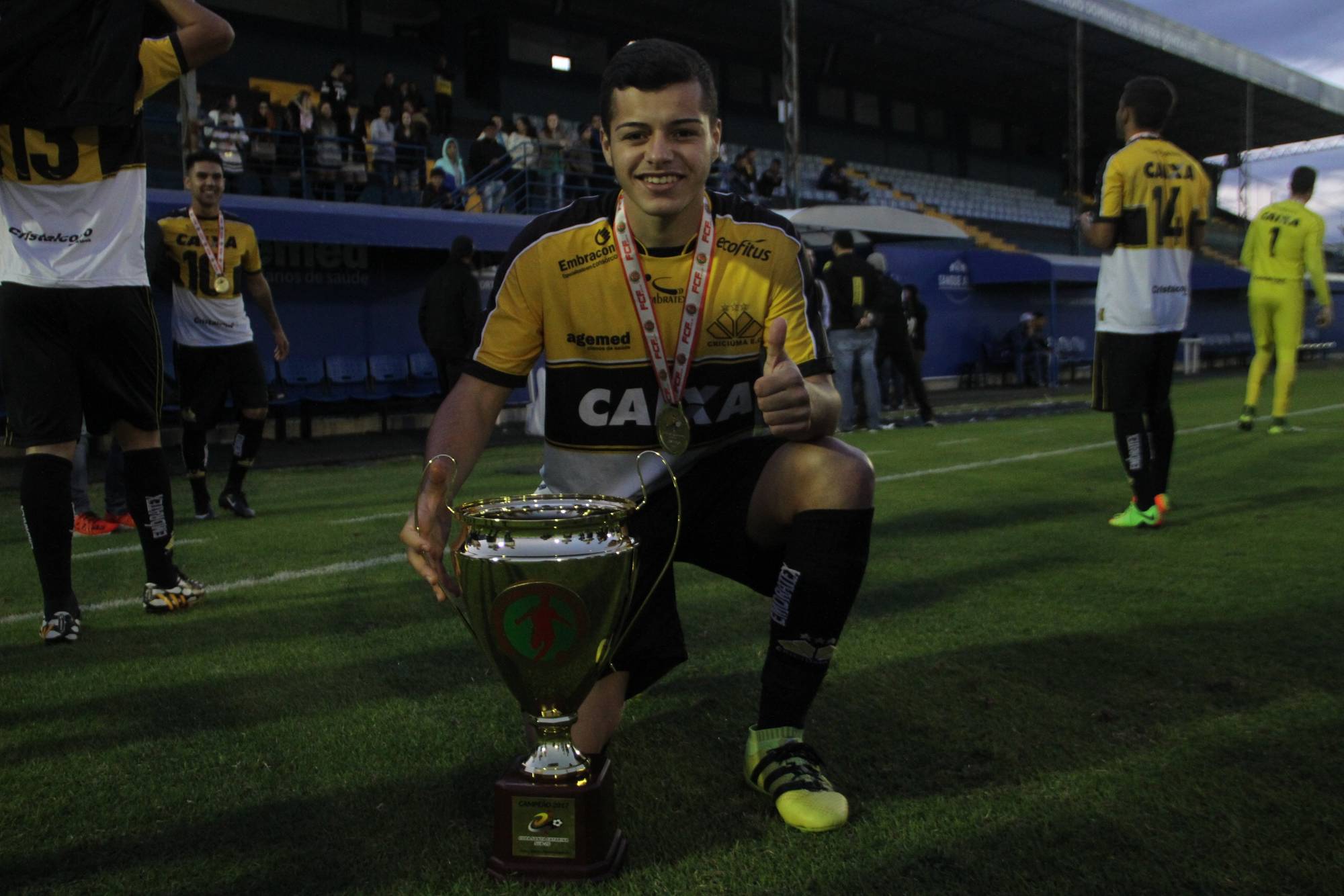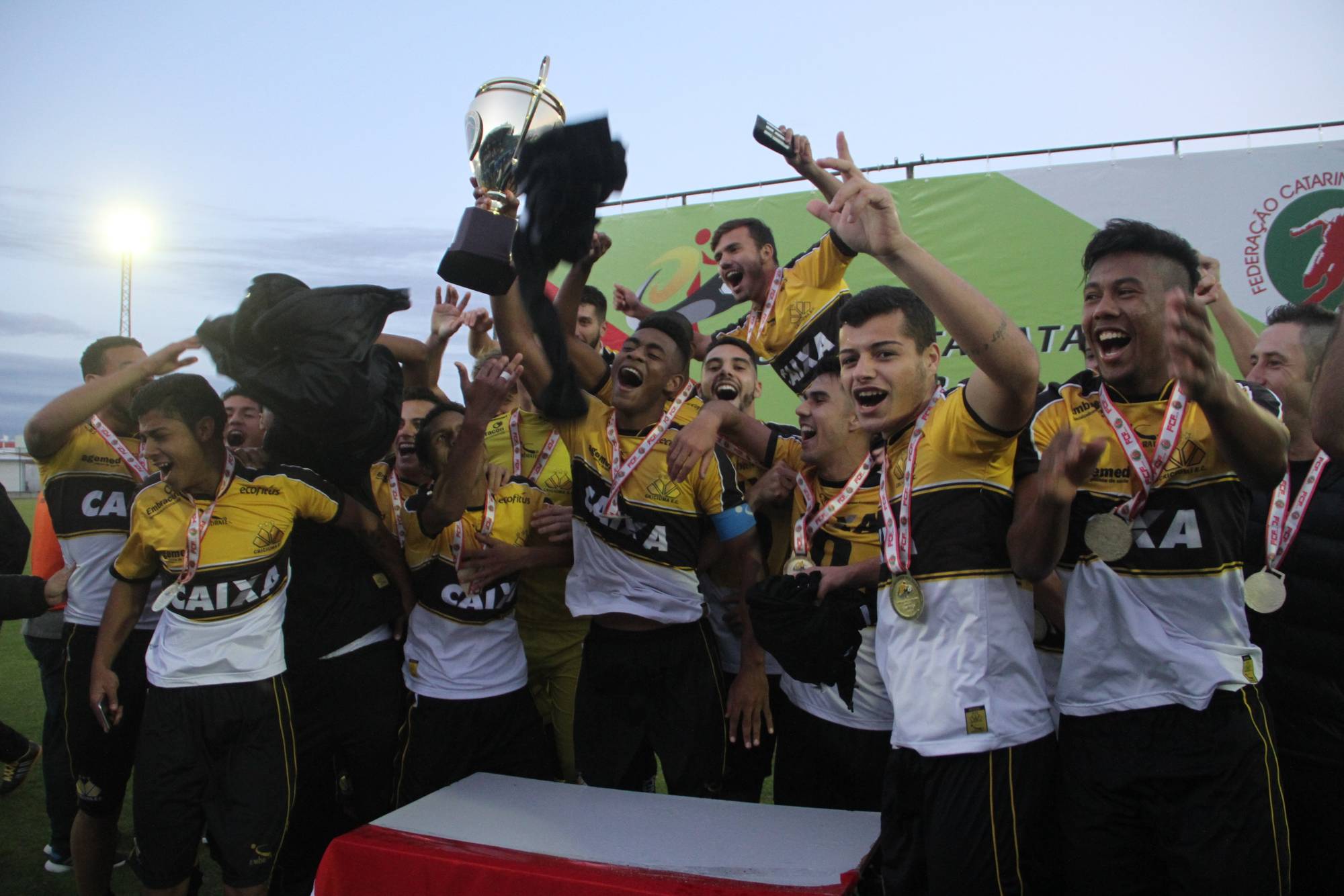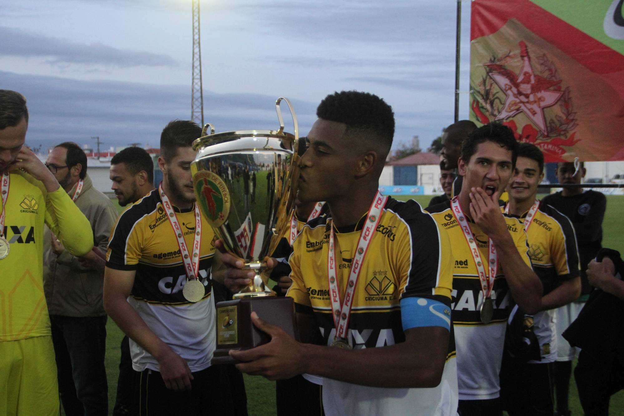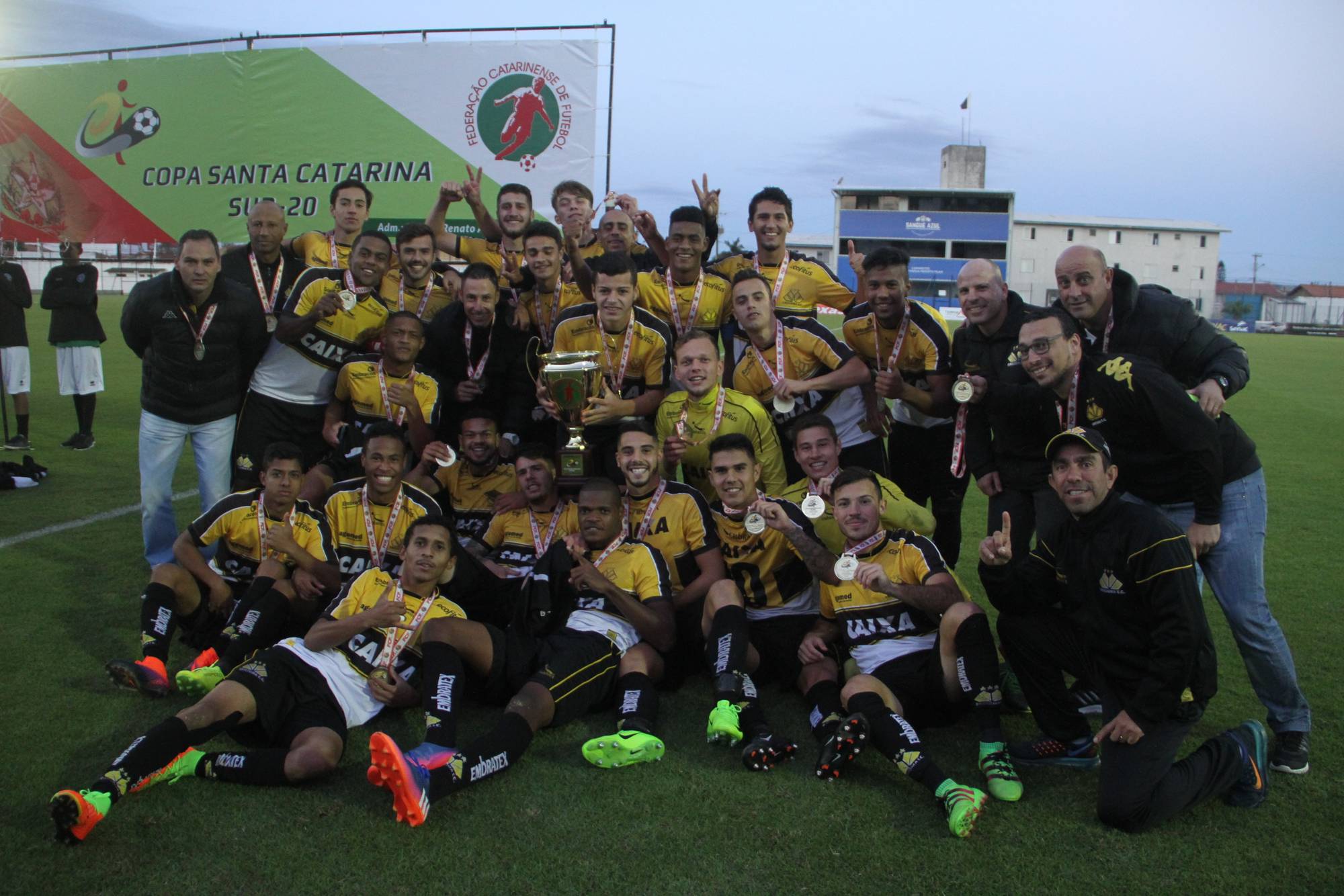 Legenda: Fotos da comemoração dos jogadores, comissão técnica e dirigentes do Criciúma após a partida Criciúma e Avaí, disputado na tarde deste sábado (01/07), no estádio Domingos Gonzales, em Tubarão, pela final da Copa Santa Catarina Sub-20 Fotos: Fernando Ribeiro/www.criciuma.com.br Download