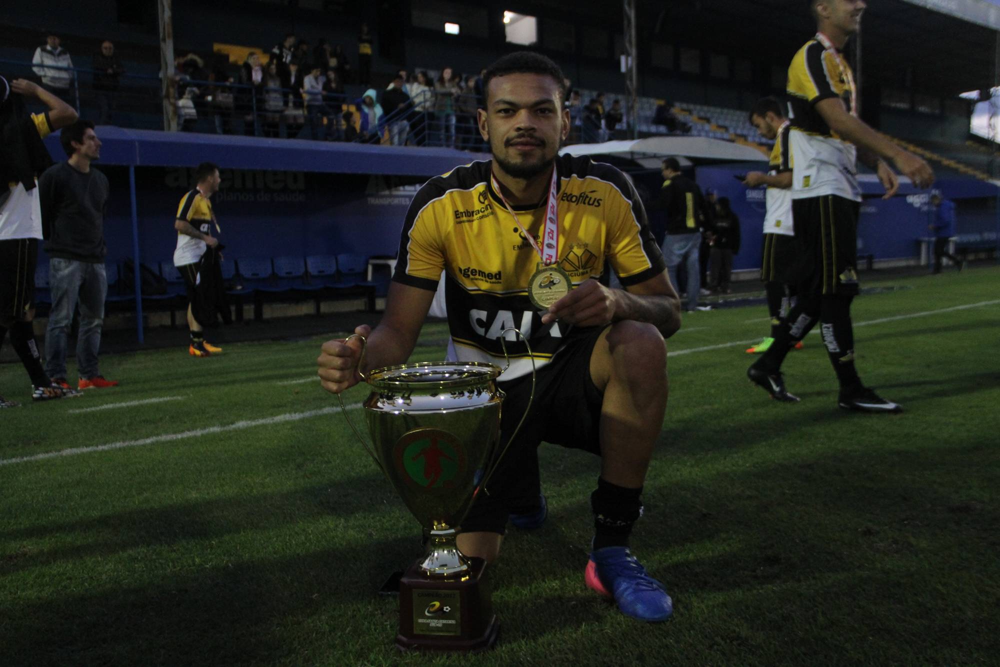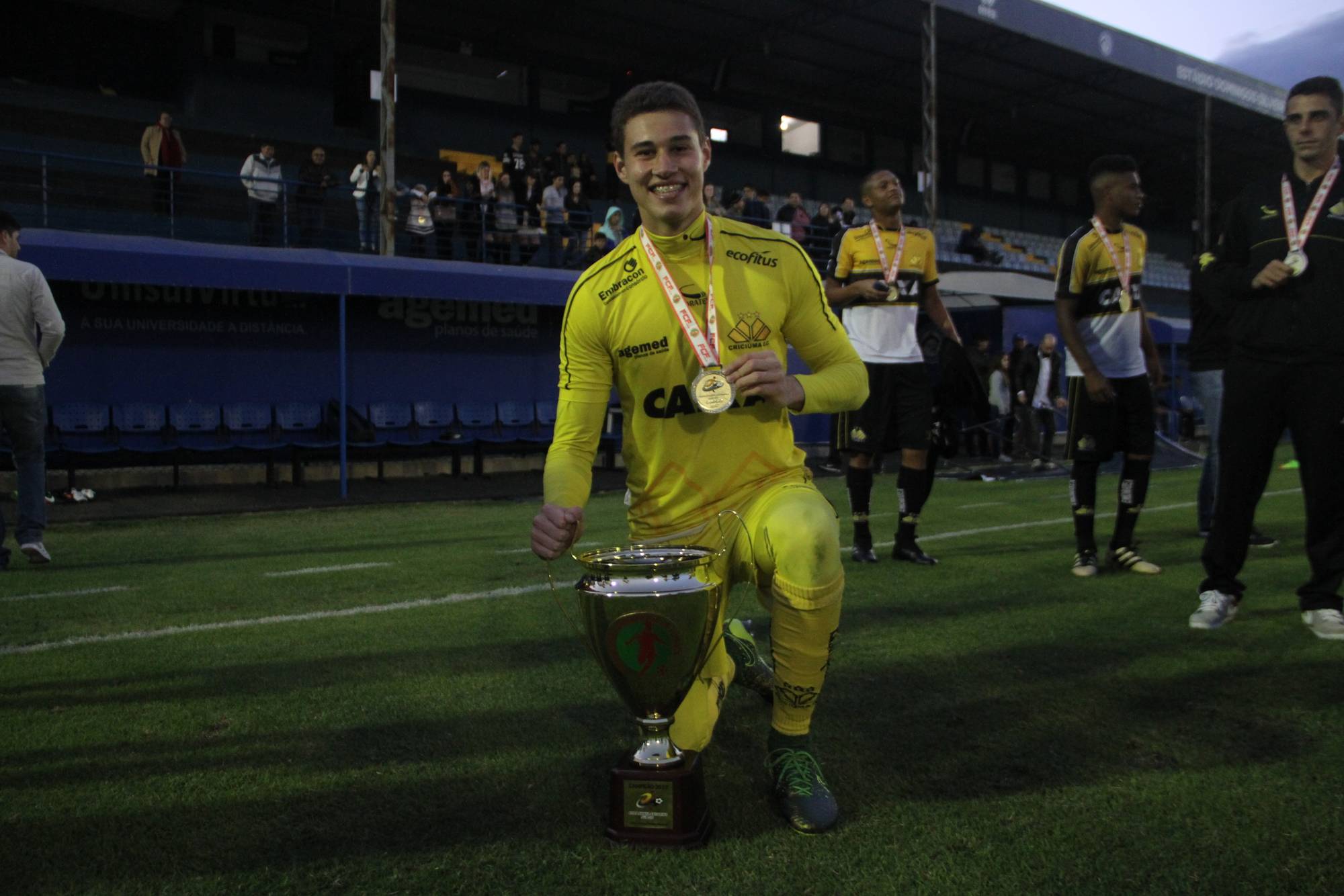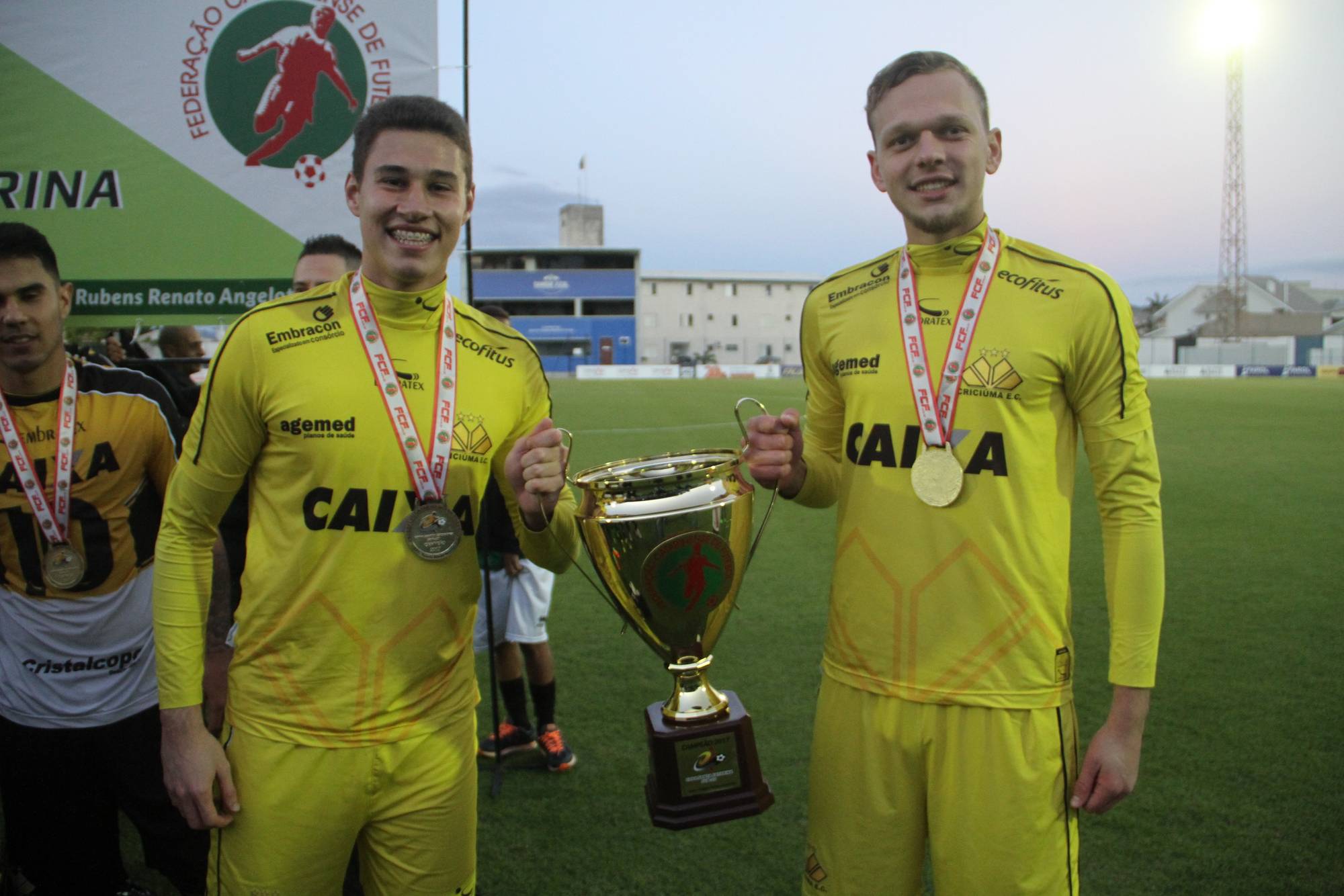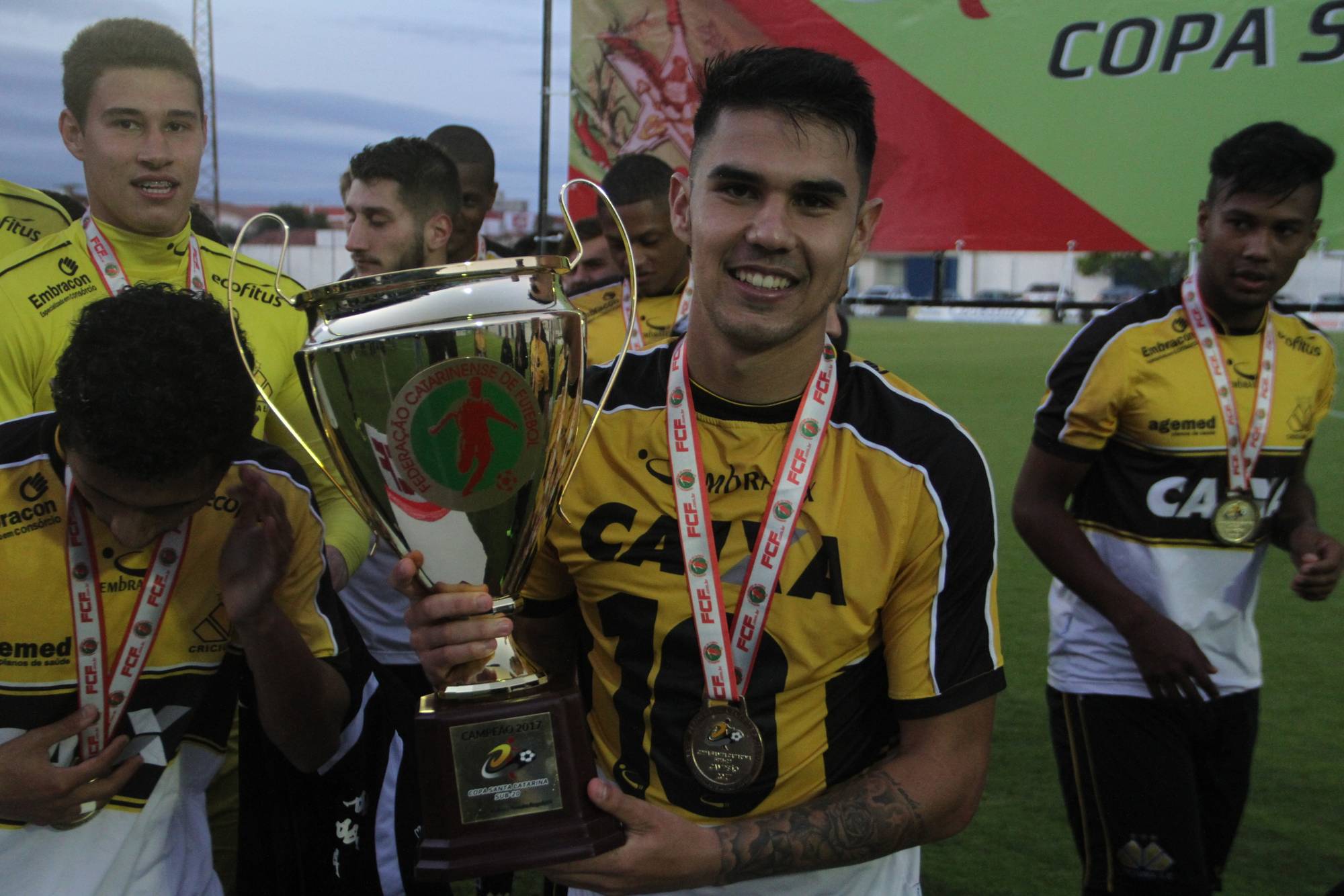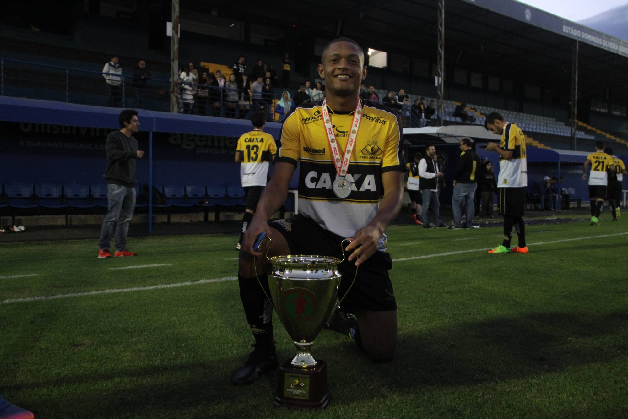 Legenda: Fotos da comemoração dos jogadores, comissão técnica e dirigentes do Criciúma após a partida Criciúma e Avaí, disputado na tarde deste sábado (01/07), no estádio Domingos Gonzales, em Tubarão, pela final da Copa Santa Catarina Sub-20 Fotos: Fernando Ribeiro/www.criciuma.com.br Download